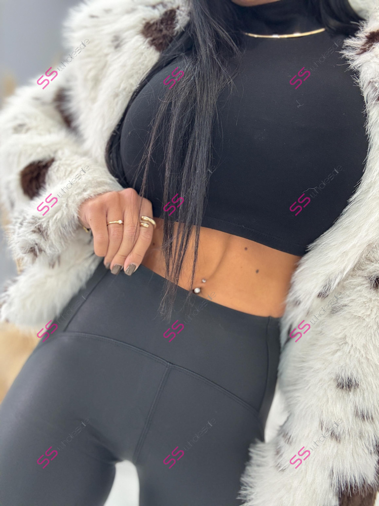 Modelka meria 164 cm a váží 57 kg. Nosí veľkosť M.