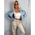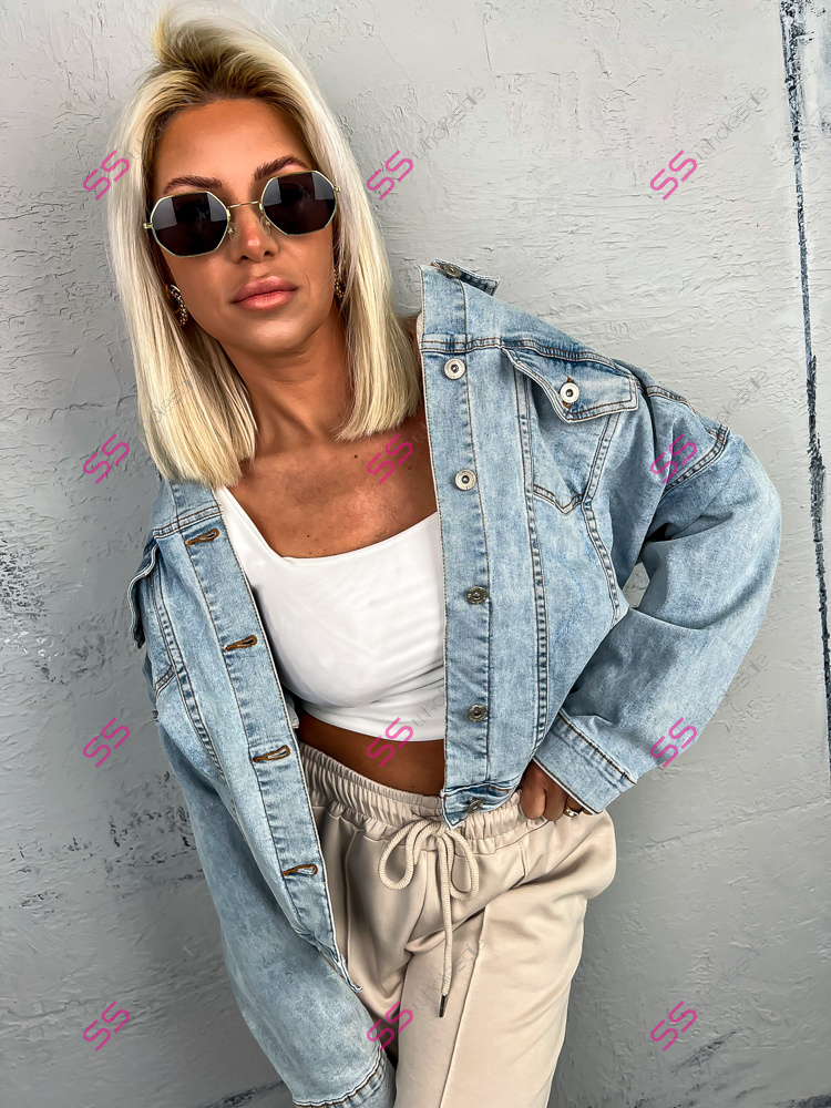 Dámsky denim kabát. Gombíky majú striebornú farbu.