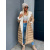 Blondínka modelka meria 164 cm a váži 57 kg. Nosí veľkosť M/L. Miery: 90cm - 61 cm - 81 cm.