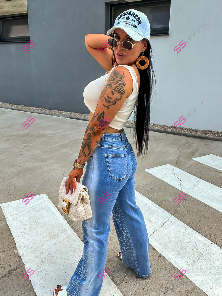 Blondínka modelka meria 164 cm a váži 57 kg. Nosí veľkosť M/L. Miery: 90cm - 61 cm - 81 cm.
