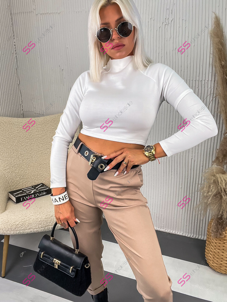 Blondínka modelka meria 164 cm a váži 57 kg. Nosí veľkosť M/L. Miery: 90cm - 61 cm - 81 cm.