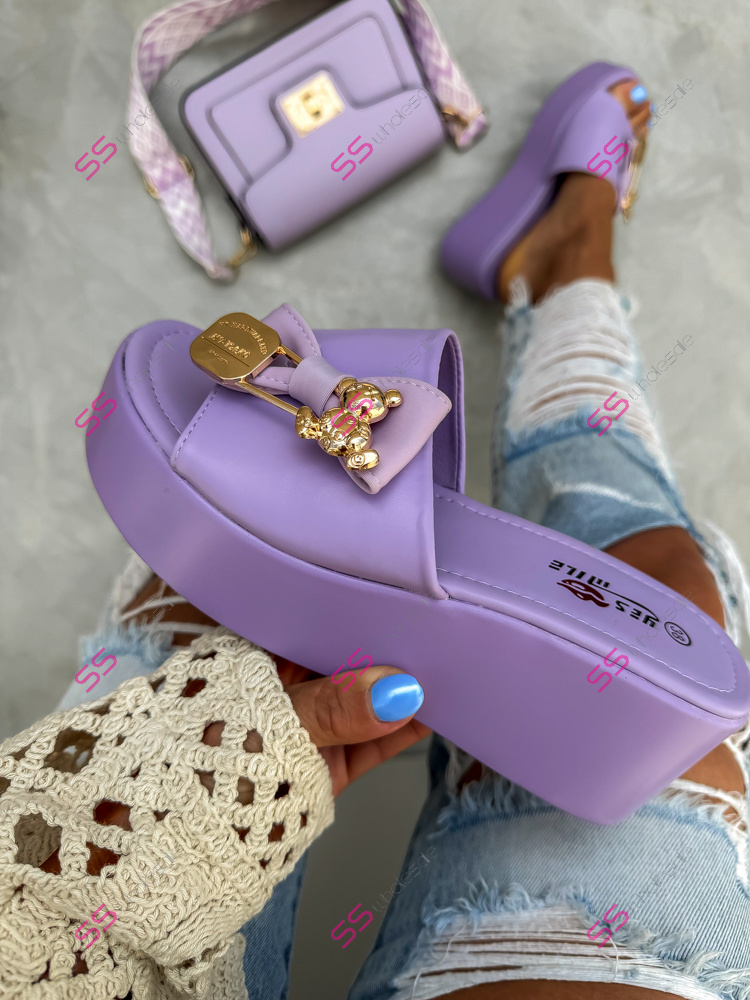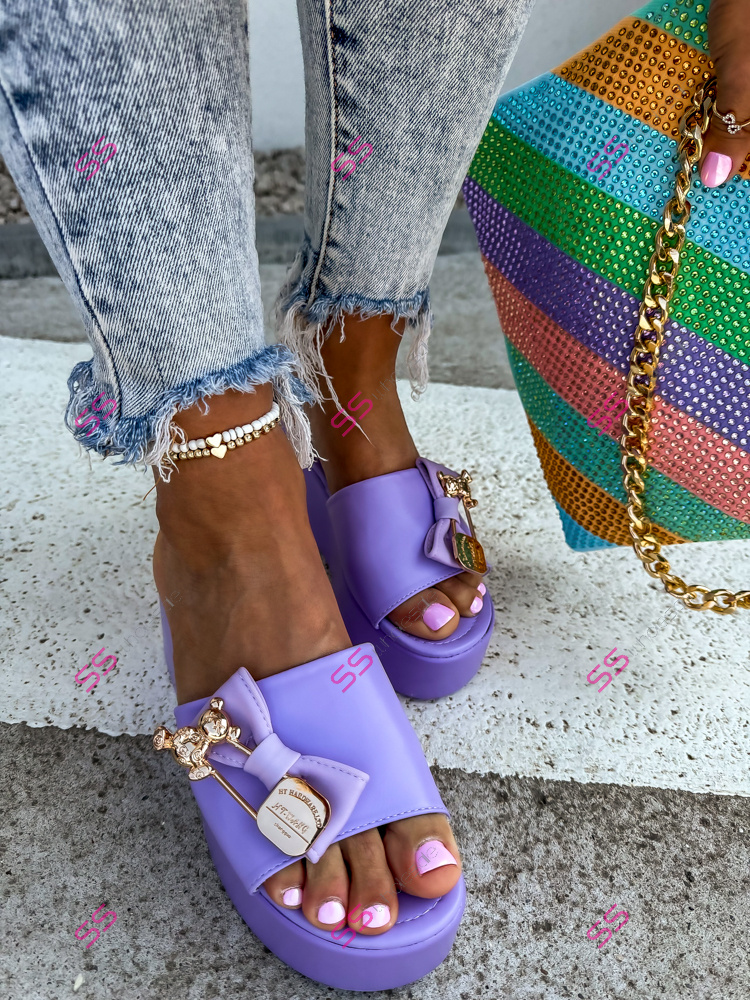 Elegantné platformové šľapky. Ozdoba má zlatú farbu.