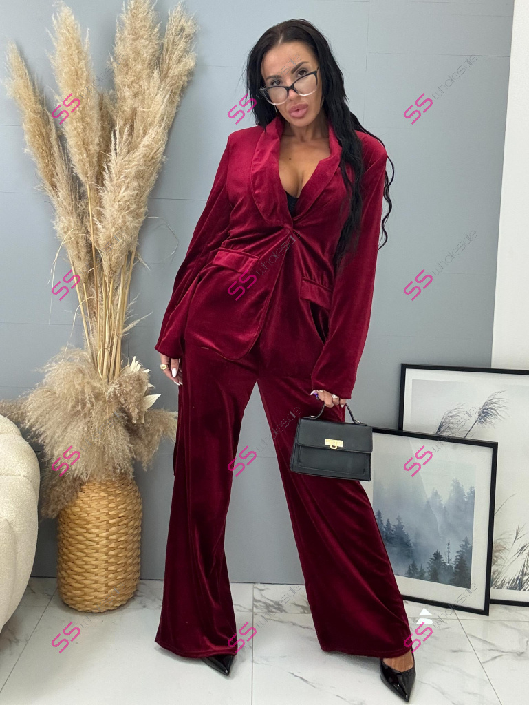 Dámsky komplet z novej kolekcie. Pozozstáva sa zo saka a širokých nohavíc. Materiál je príjemný, elastický.