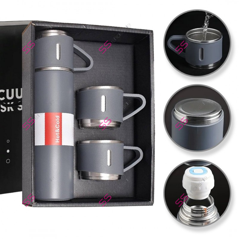 Nerezové prevedenie vákuovej termosky umožňuje jej použitie za tepla aj za studena. Inovatívny hermetický uzáver termosky udržuje nápoje dokonale uzavreté a zabraňuje nežiaducemu rozliatiu alebo úniku. Hrnčeky s uchom zabránia popáleniu pri držaní horúceho nápoja v ruke.