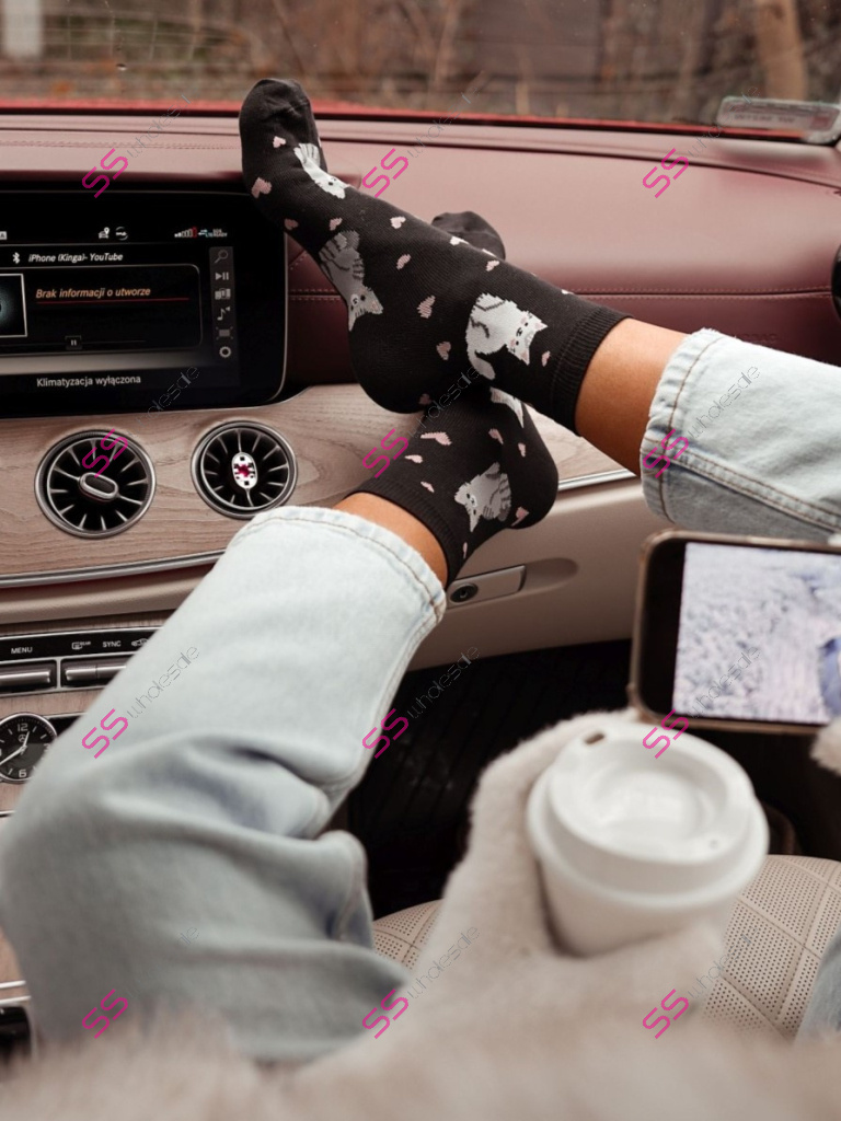 Čierne ponožky s mačičkami-