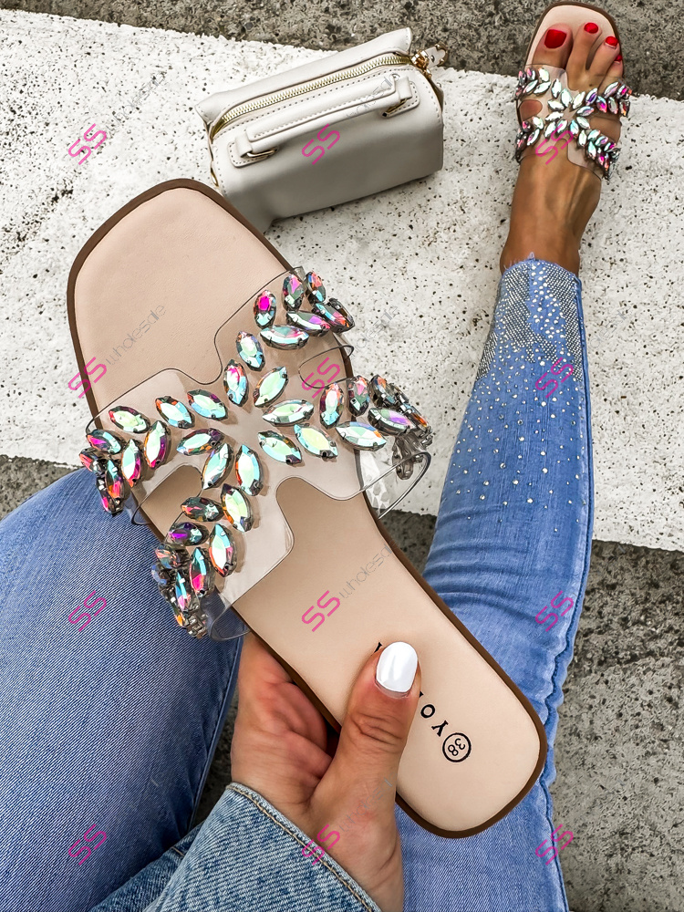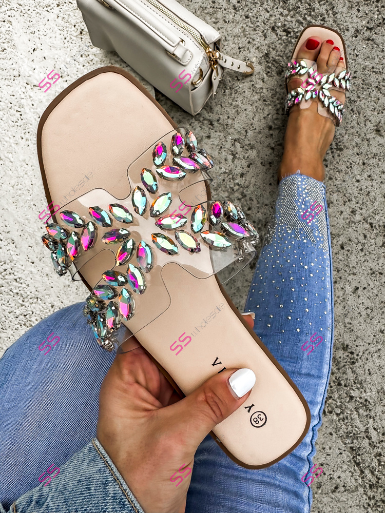 Dámske šľapky zdobené kamienkami.
