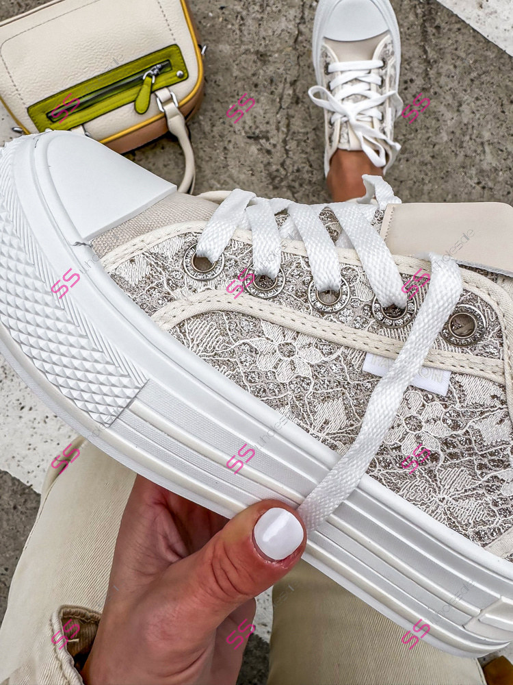 Veľkosti zodpovedajú klasickému európskemu číslovaniu. Modelka nosí veľkosť 38 a rovnakú veľkosť mala obutú i pri fotení.