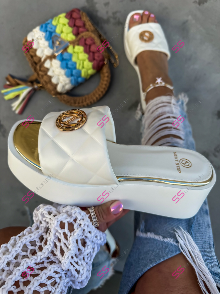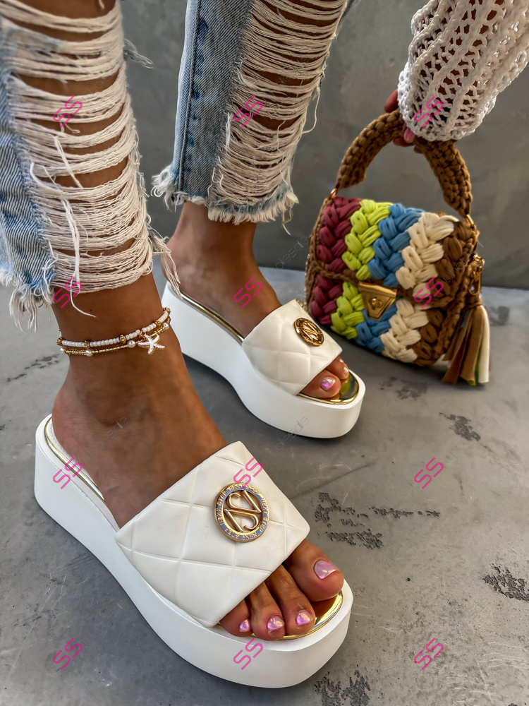 Dámske šľapky na každú príležitosť. Doplnky majú zlatú farbu.