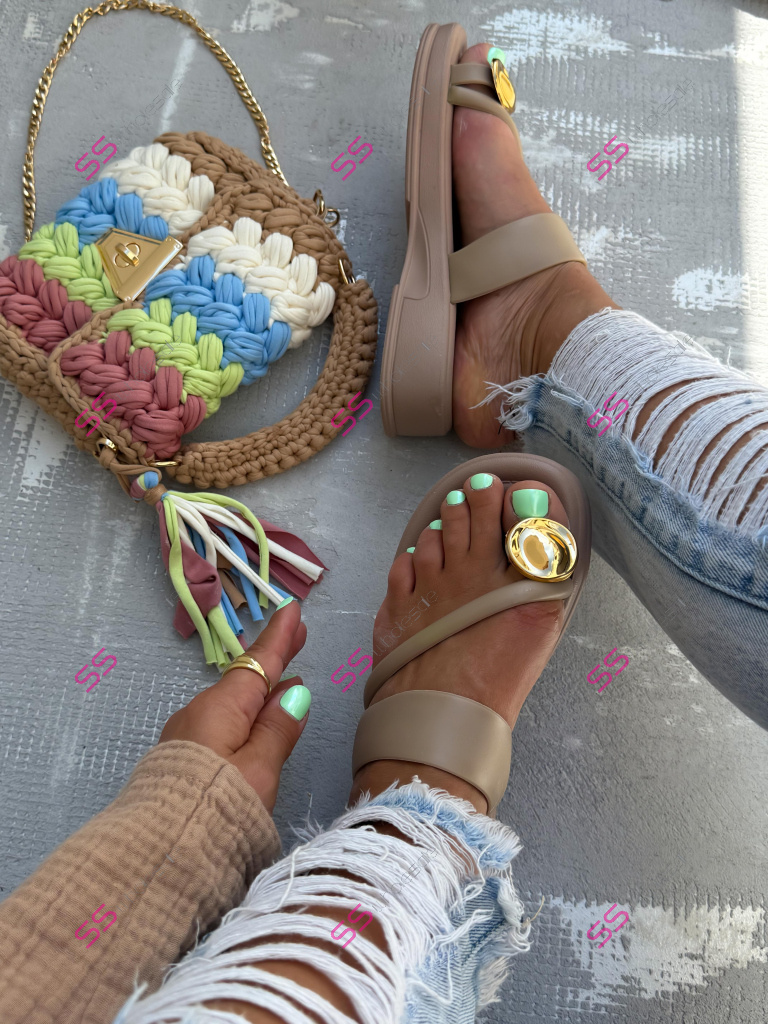 Dámske šľapky so zlatou ozdobou ALIENOR-