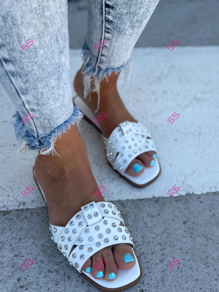 Šľapky zdobené striebornými kamienkami LAMIA-