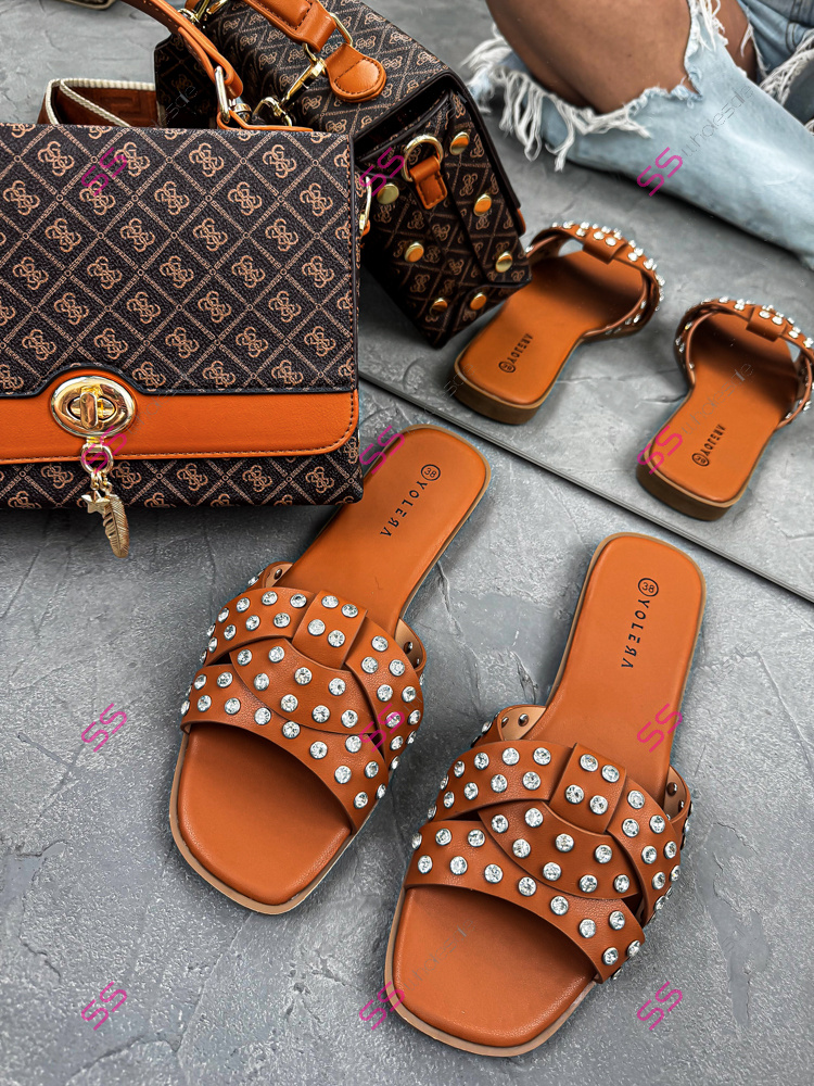 Šľapky zdobené striebornými kamienkami LAMIA-