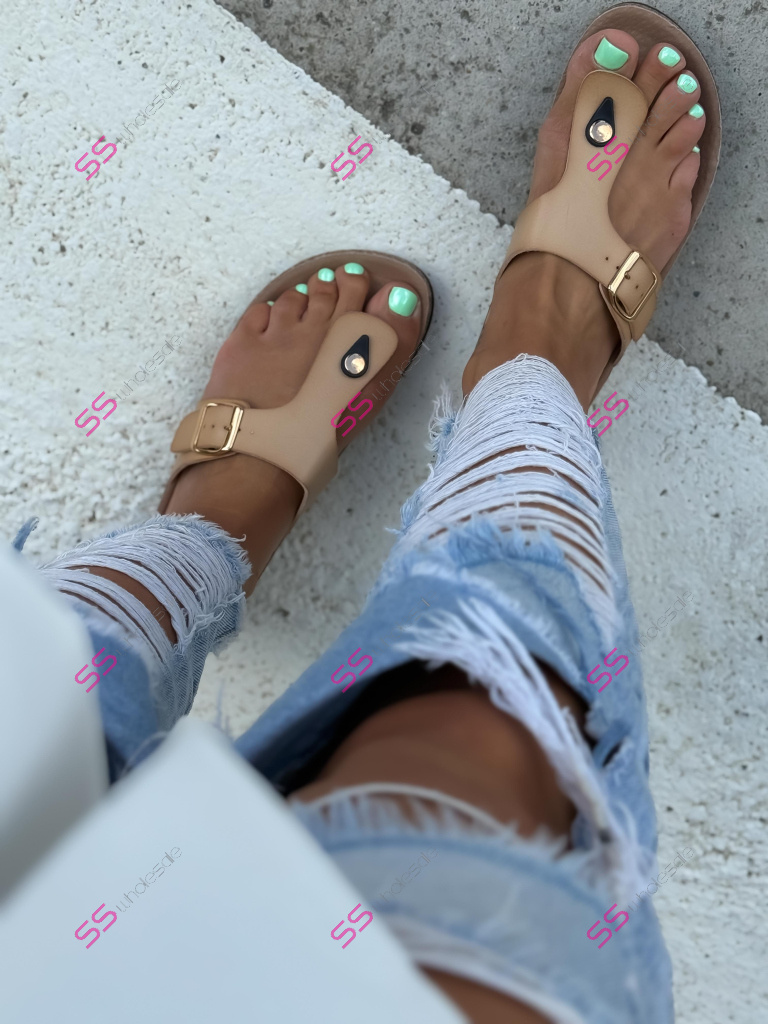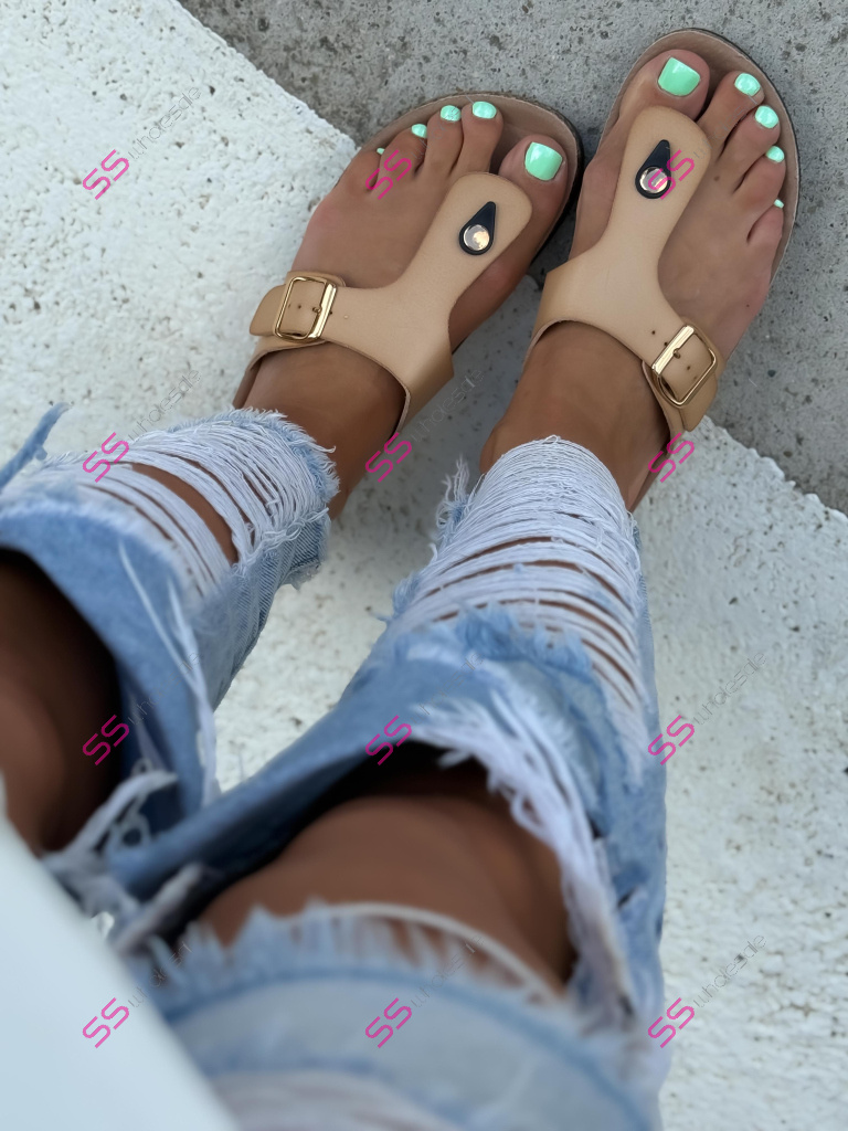 Dámske šľapky so zlatou ozdobou PAULINA-