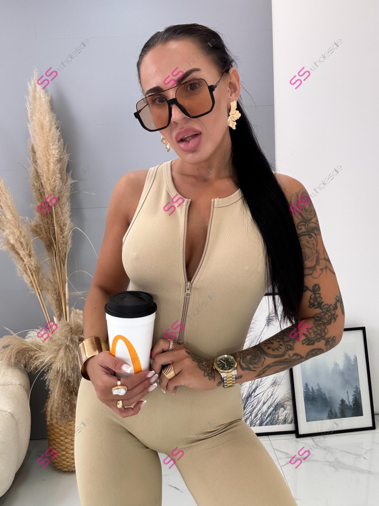 Modelka čiernovláska meria 164 cm a váži 57 kg. Nosí veľkosť S.
