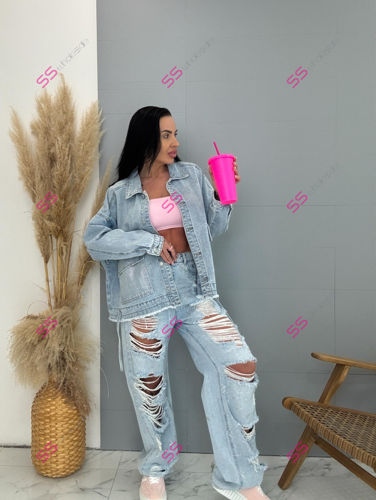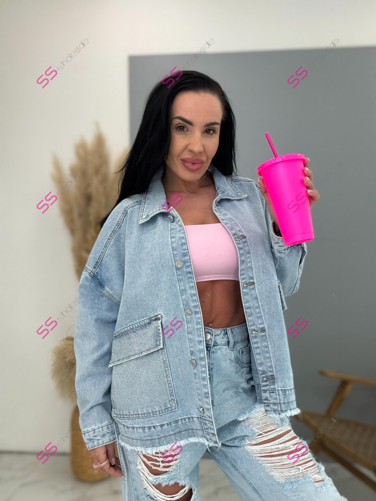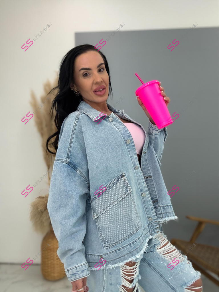 Dámsky denim kabát. Gombíky majú striebornú farbu. Materiál je minimálne elasticky. Modelka mala na sebe veľkosť S!