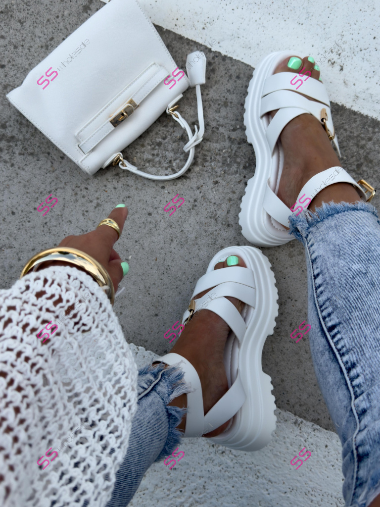 Biele sandále zo zlatými aplikáciami SHENAYA-