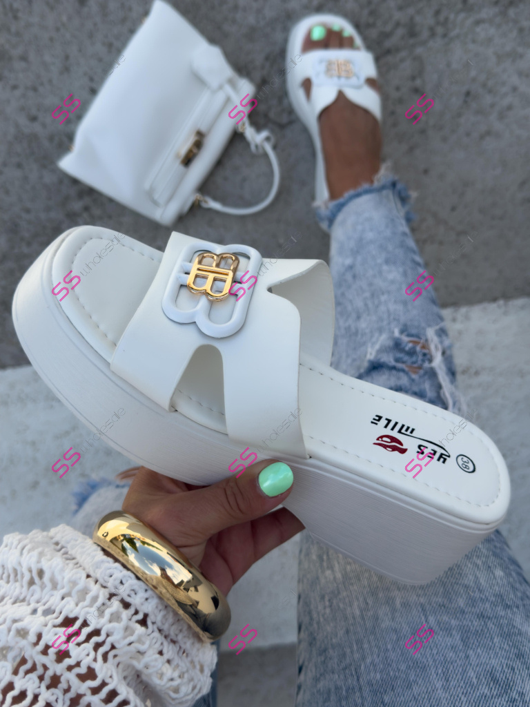 Platformové šľapky so zlatou ozdobou ORIANA-
