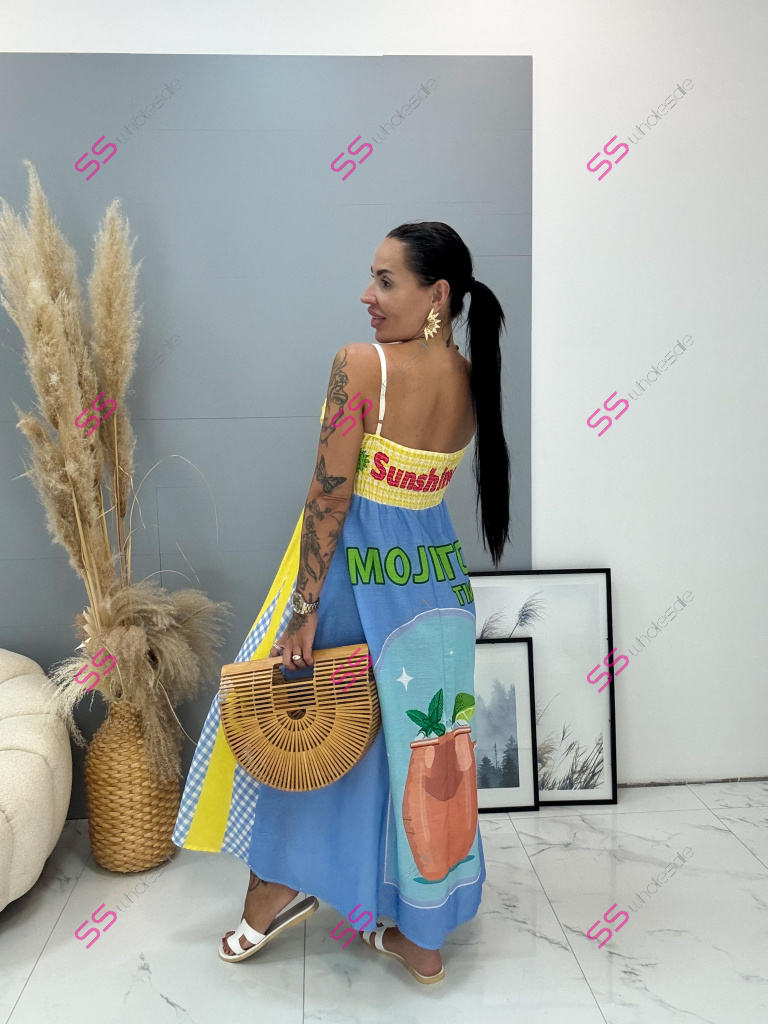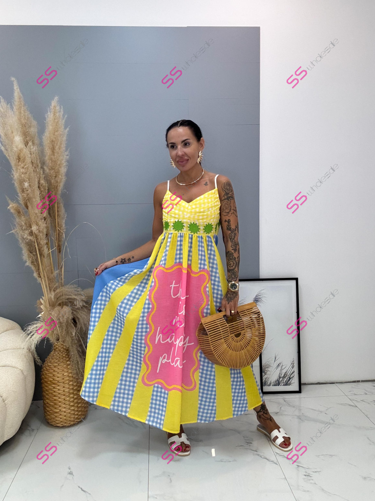Šaty sú vyrobené z príjemného materiálu, ktorý nie je elastický. Šaty majú nastaviteľné ramienka.