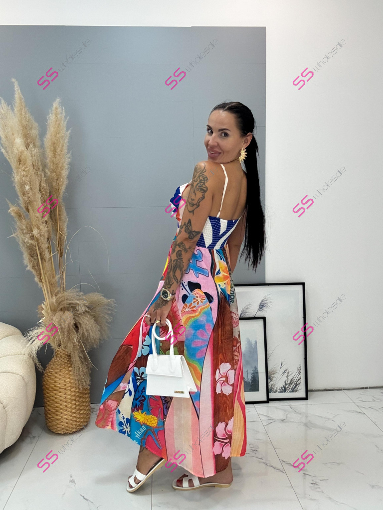 Šaty sú vyrobené z príjemného materiálu, ktorý nie je elastický. Šaty majú nastaviteľné ramienka.