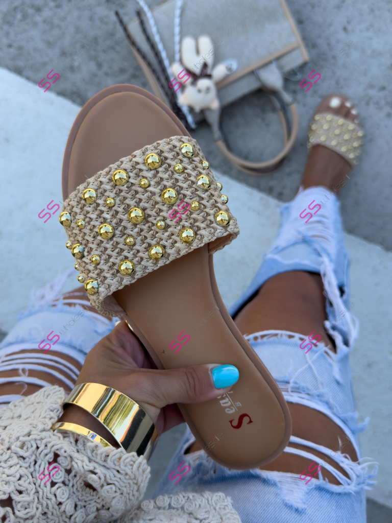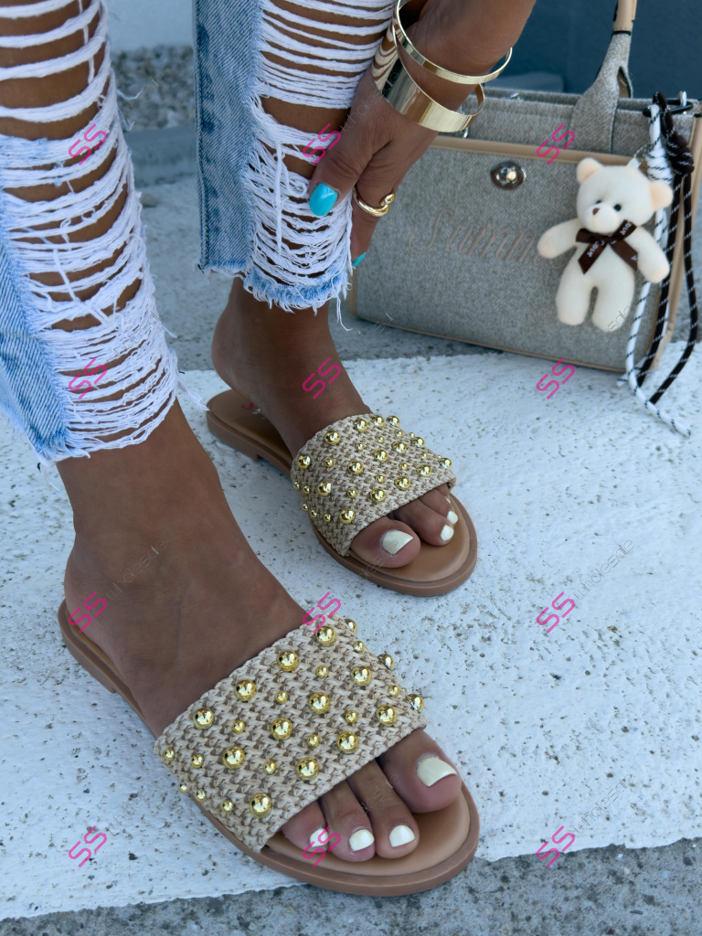 Šľapky so zlatými perličkami RUBY-
