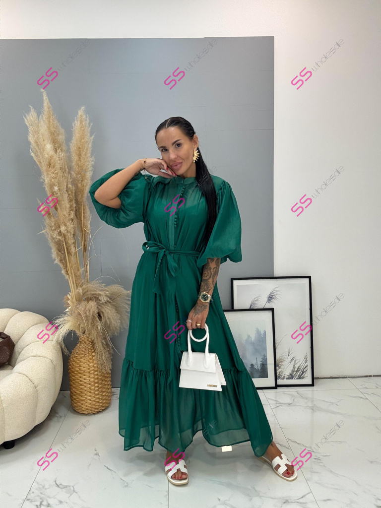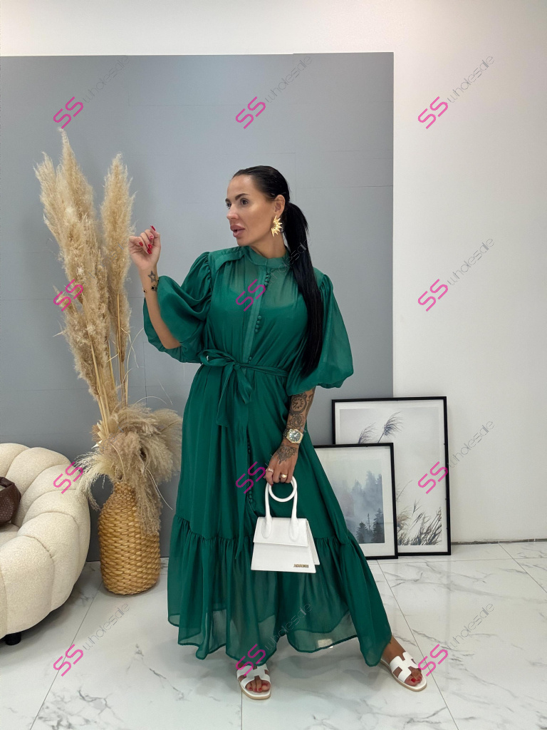 Premium kvalita. Lyocellové midi šaty s opaskom a nadýchanými rukávmi