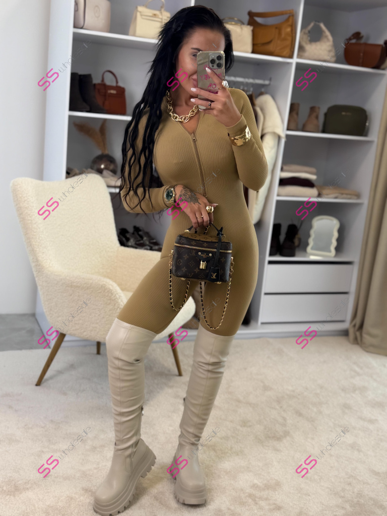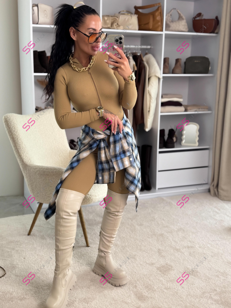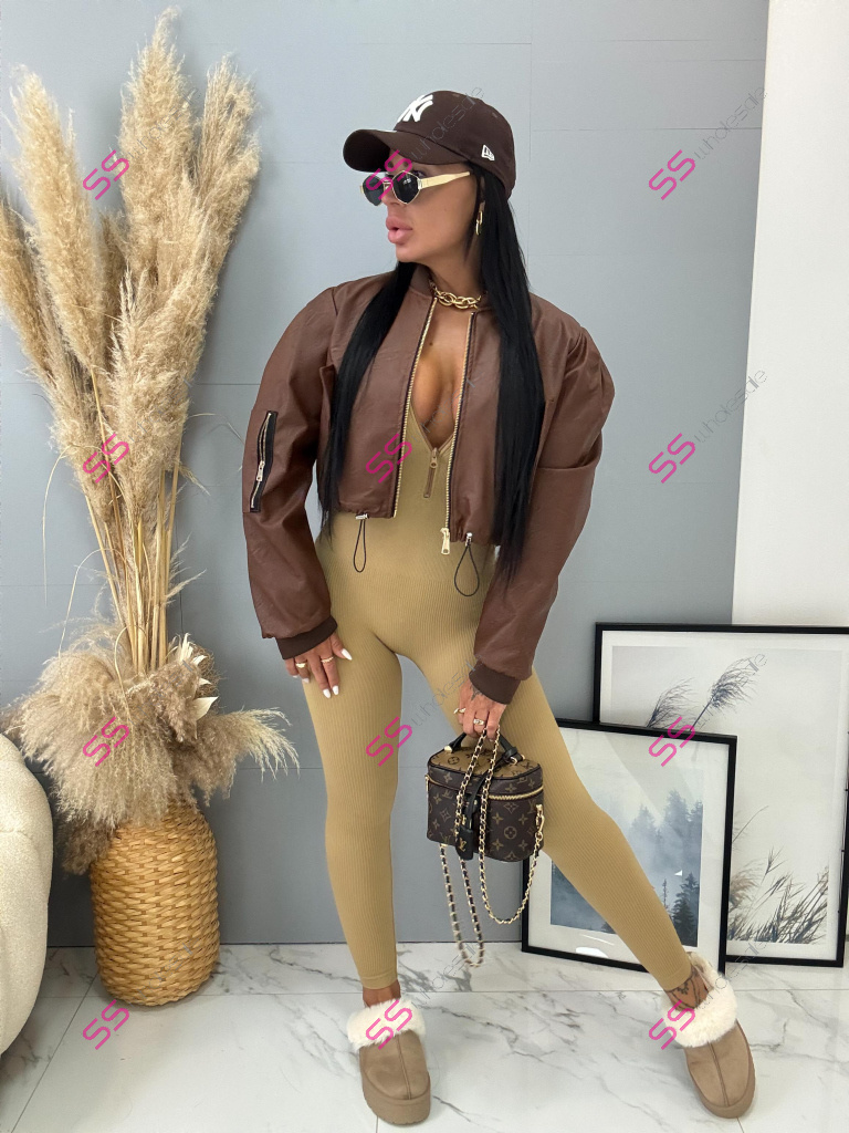 Modelka meria 164 cm a váži 57 kg.  Má na sebe veľkosť S/M