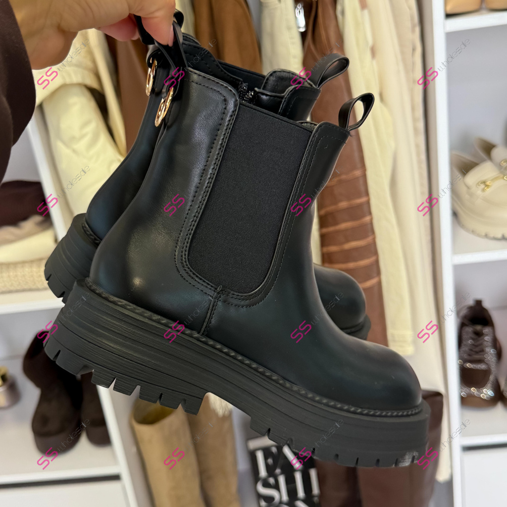 Čižmy sú mierne zateplené. Ozdoba má zlatú farbu.