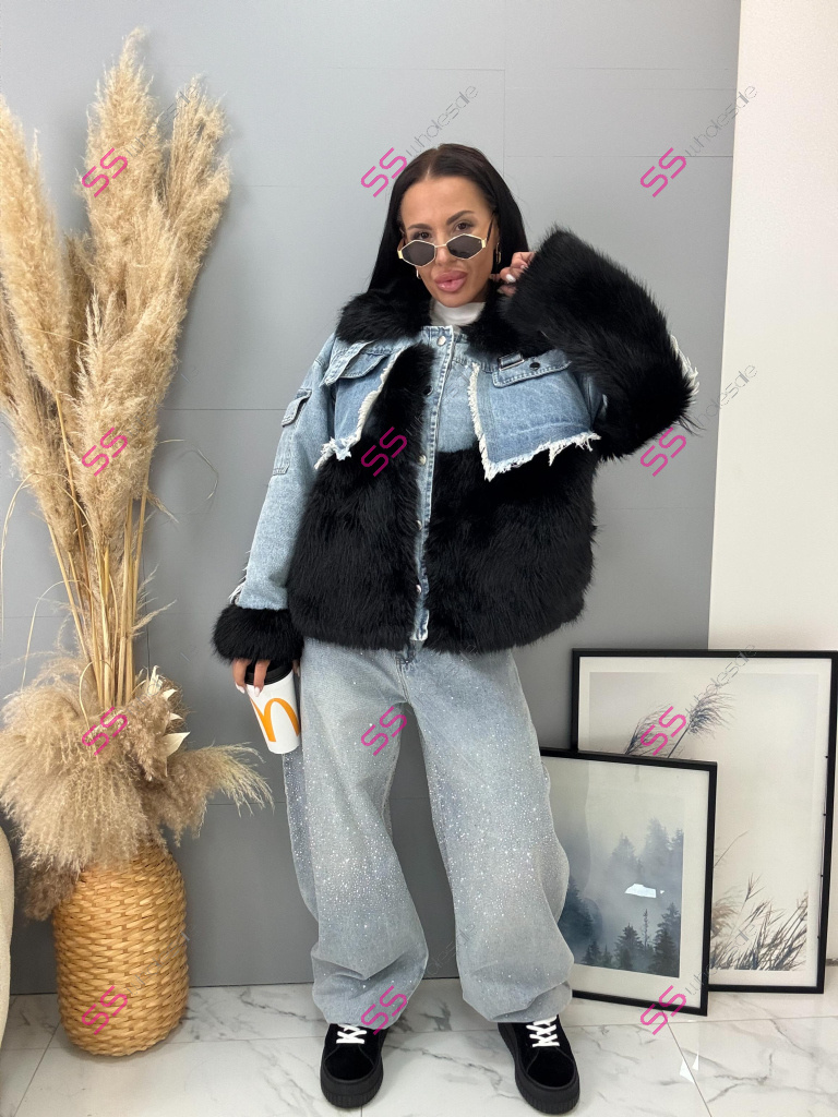 Štýlová na každý deň! Moderný kabát je výrazná vďaka strihu.Bunda je zateplená. Kožušina je neodnímateľná. Zapínanie na strieborné gombíky.