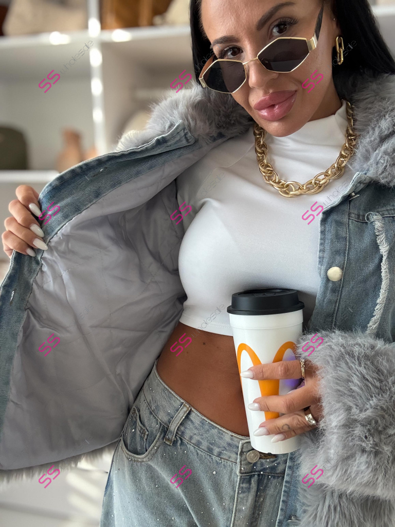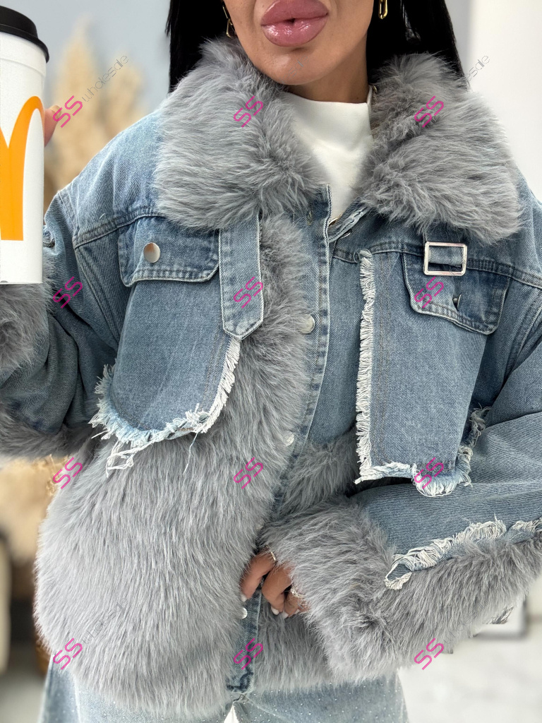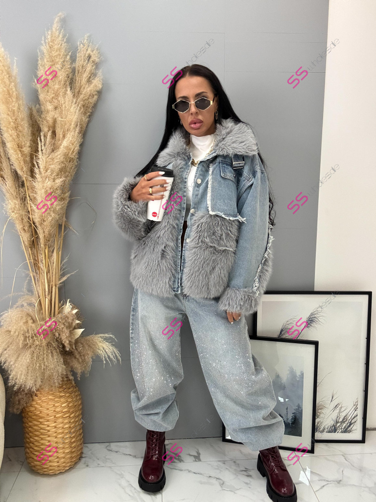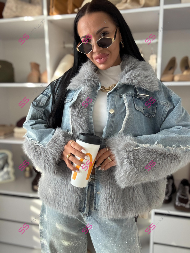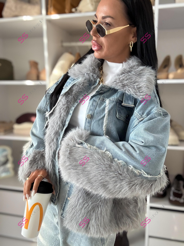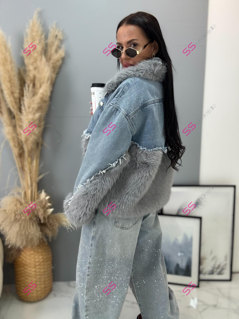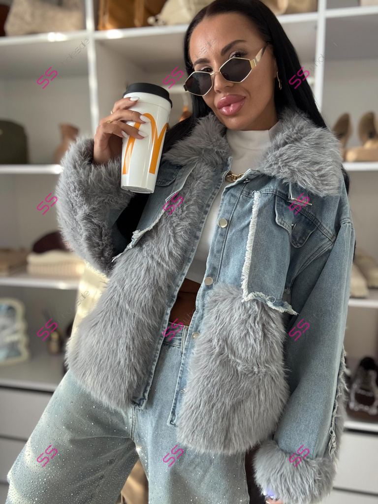 Štýlová na každý deň! Moderný kabát je výrazná vďaka strihu.Bunda je zateplená. Kožušina je neodnímateľná. Zapínanie na strieborné gombíky.