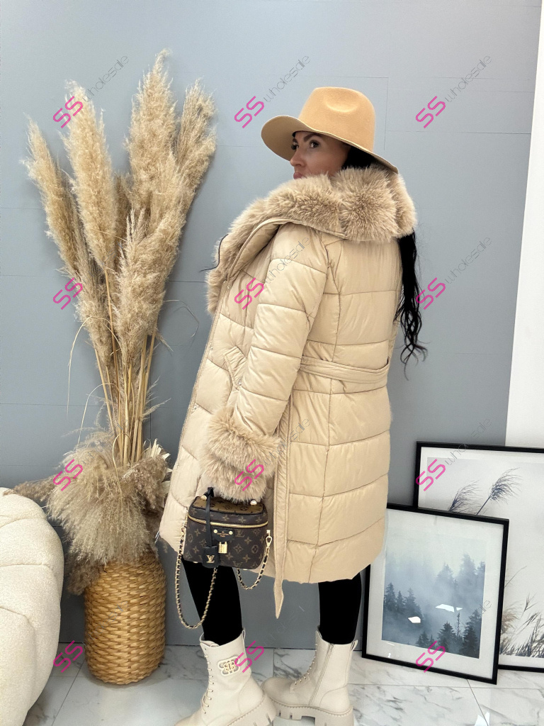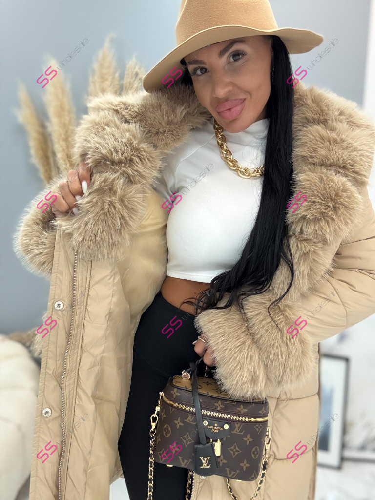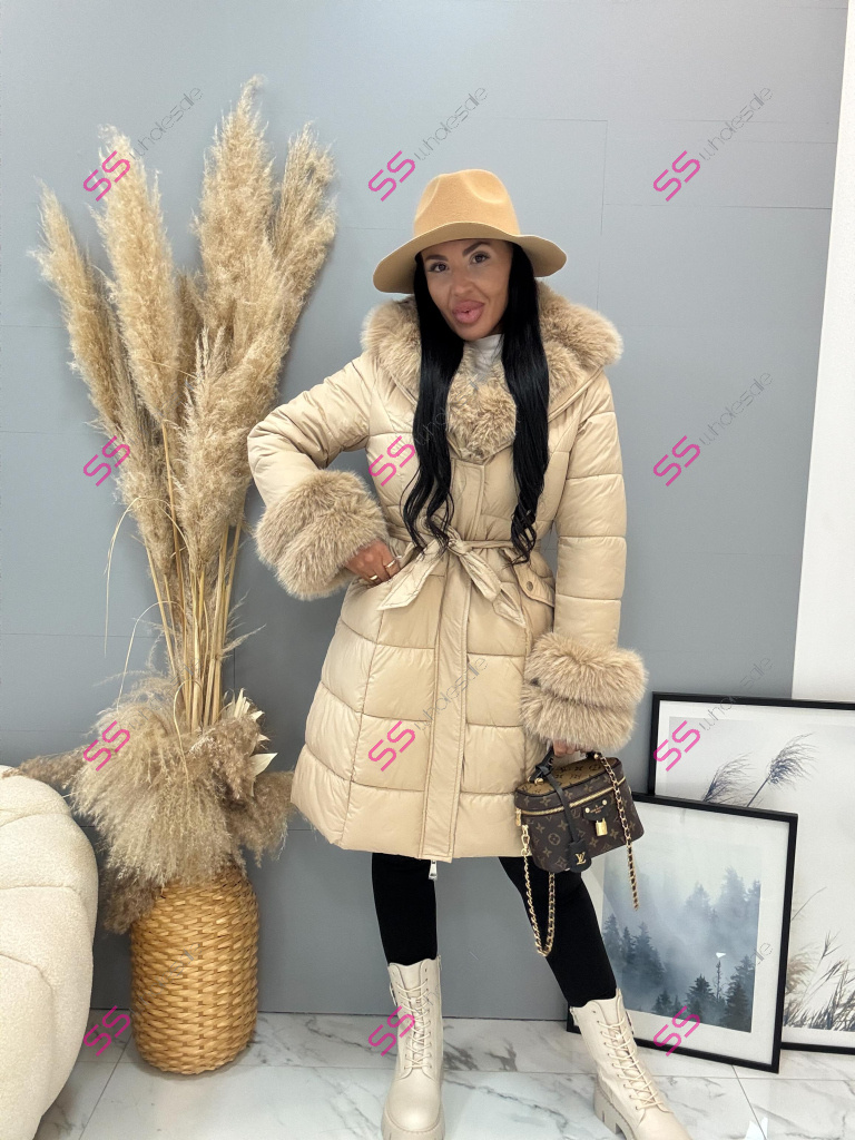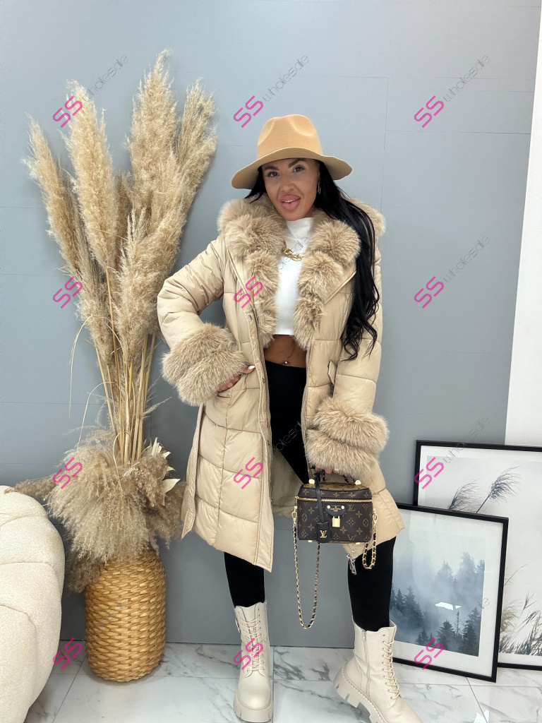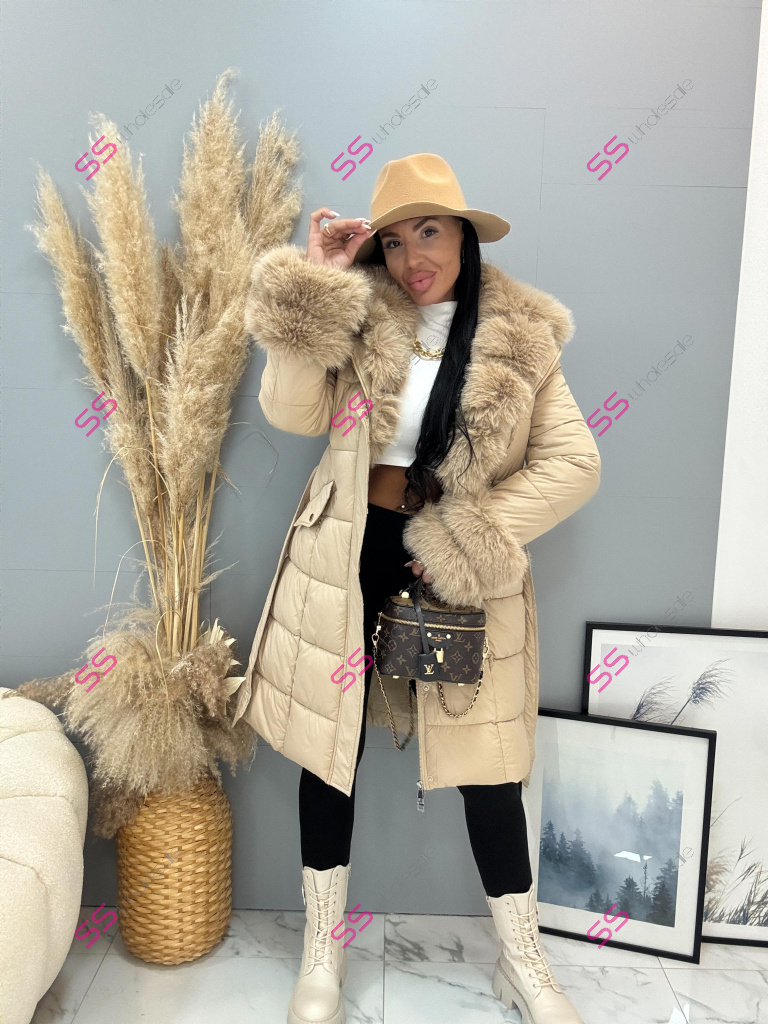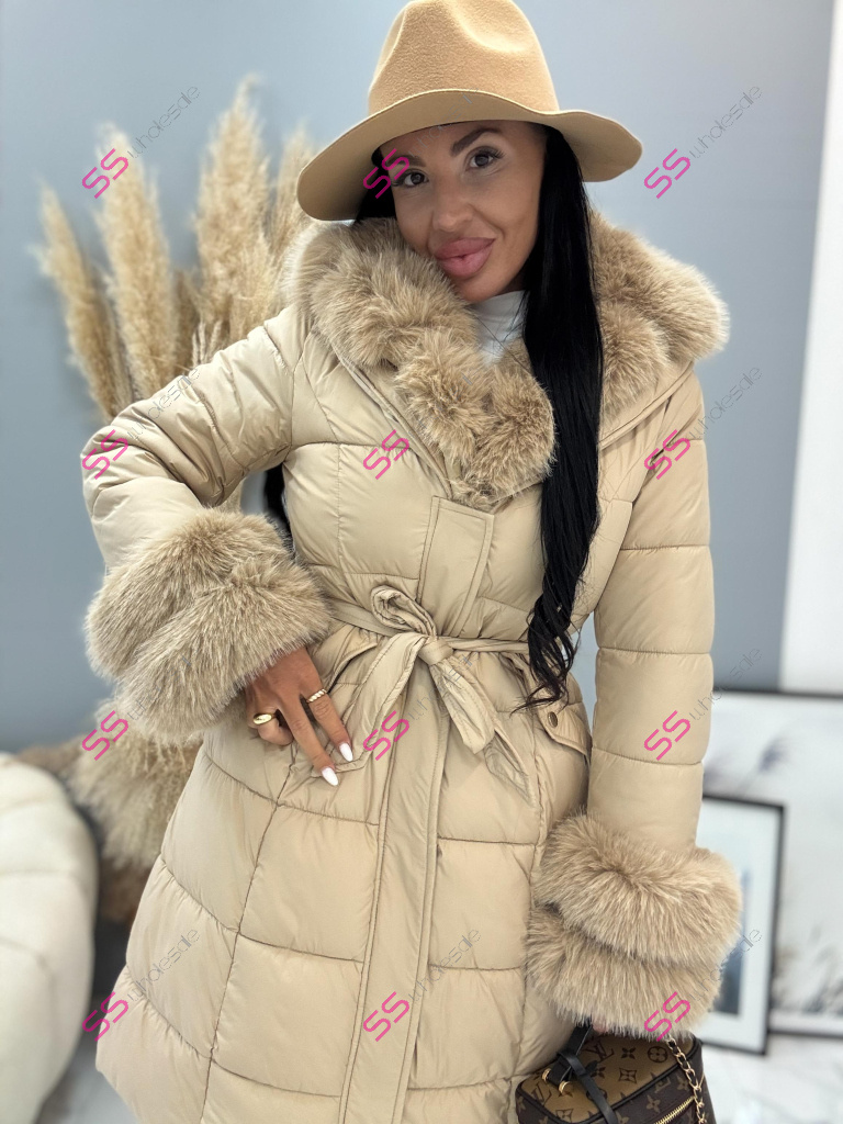 Bunda s odnímateľným kožušinovým lemom na golieri. S bočnými vreckami. Ozdoba v striebornej farbe.