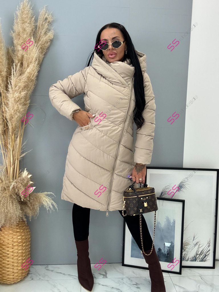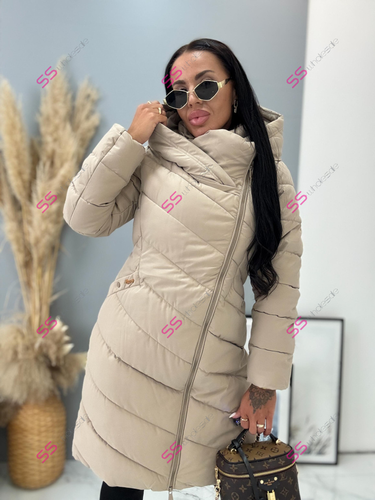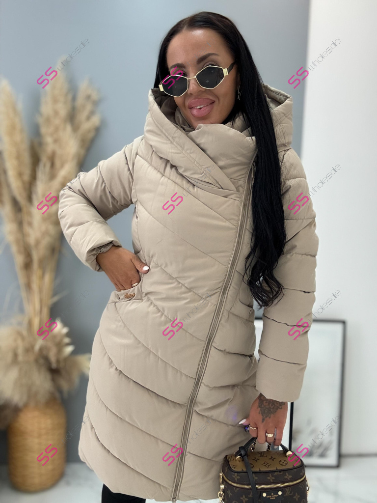 Bunda s odnimateľnou kapucňou. S bočnými vreckami. Ozdoba v zlatej farbe.