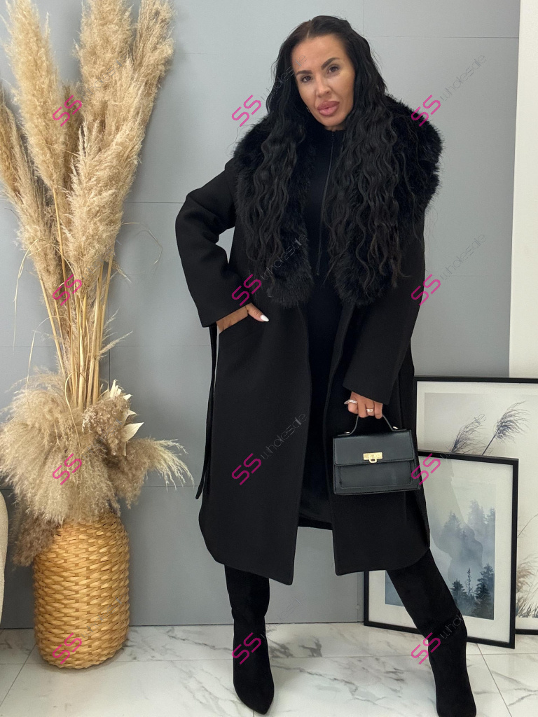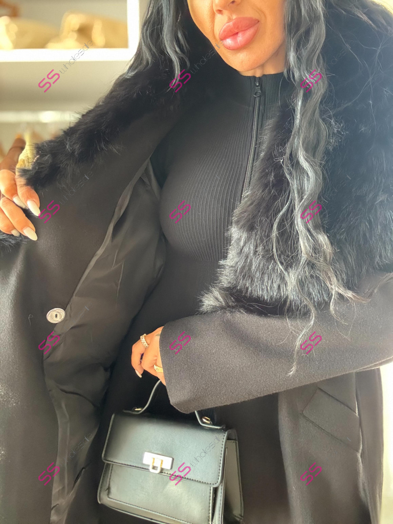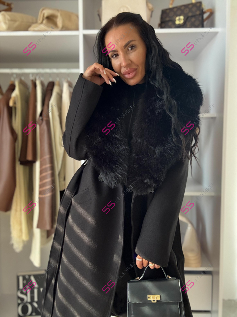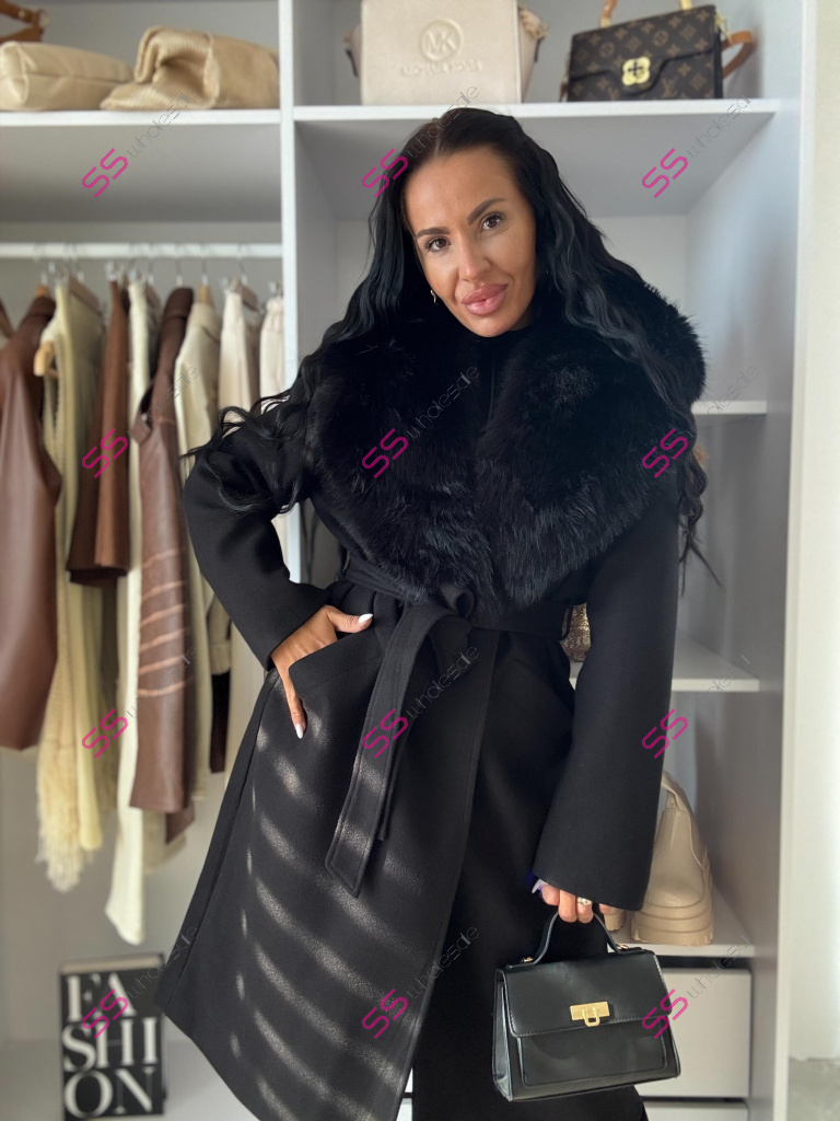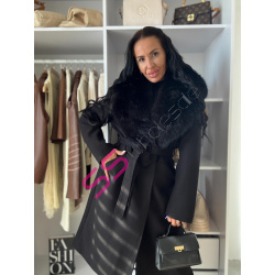 Bunda je vyrobený z príjemného materiálu. S prednými vreckami a s opaskom. S odnímateľným kožušinovým lemom na golieri.