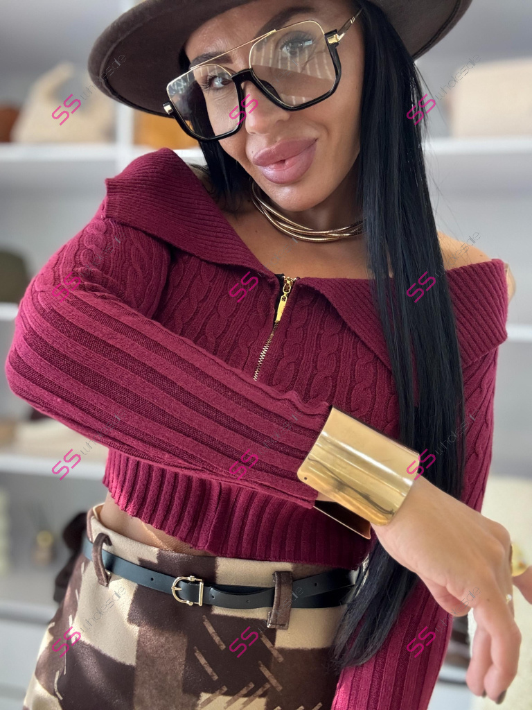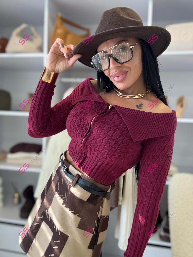 Materiál je elastický. Má dlhé rukávy a zapínanie vpredu na zlatý zips.