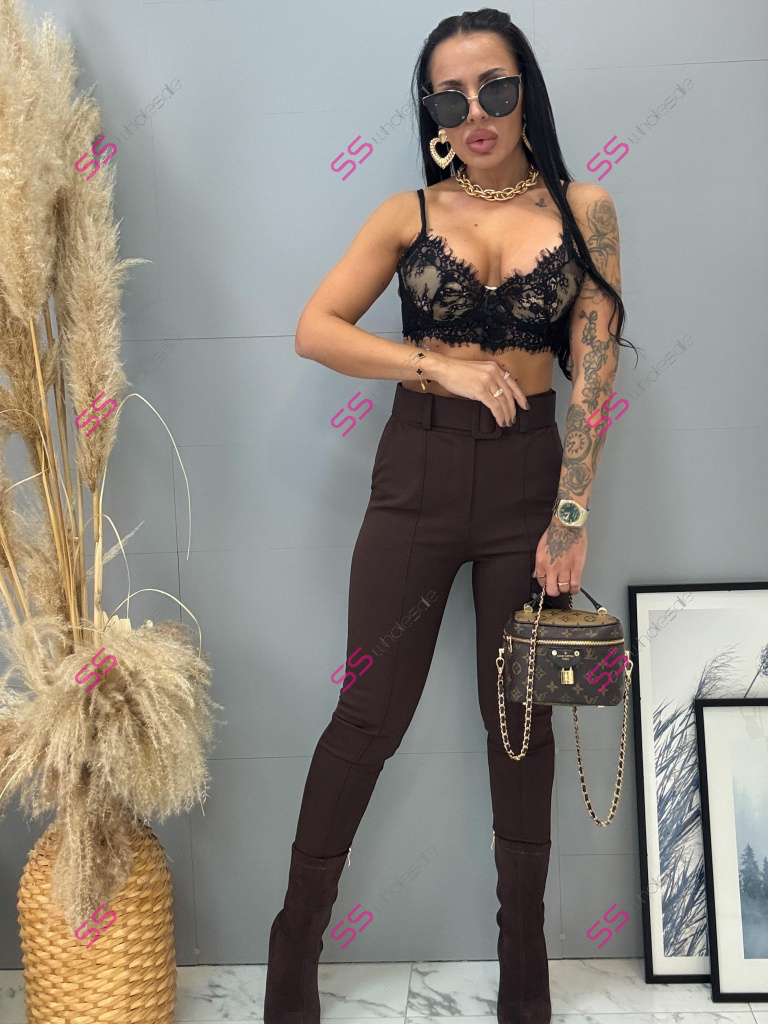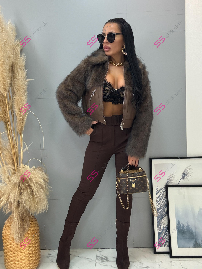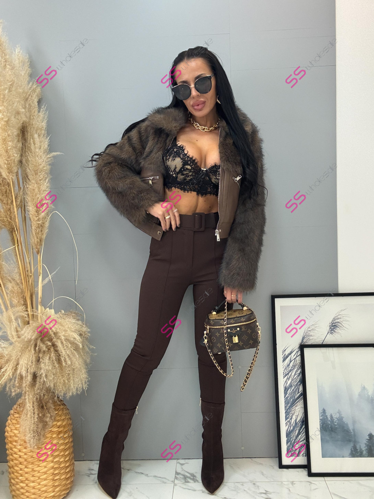 Modelka meria 164 cm a váží 57 kg. Nosí veľkosť S