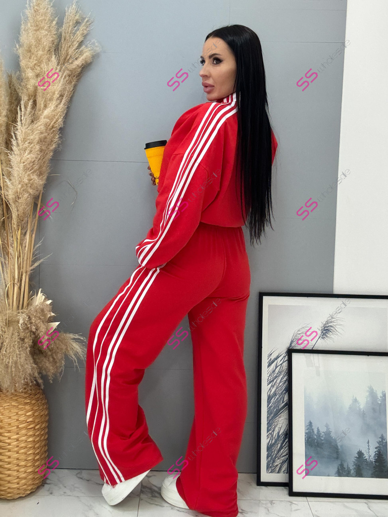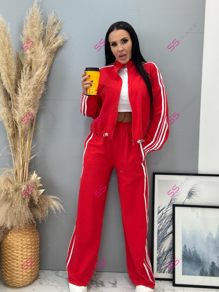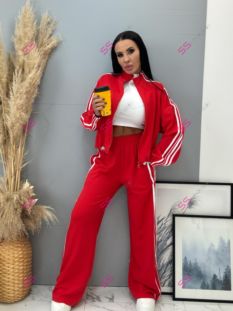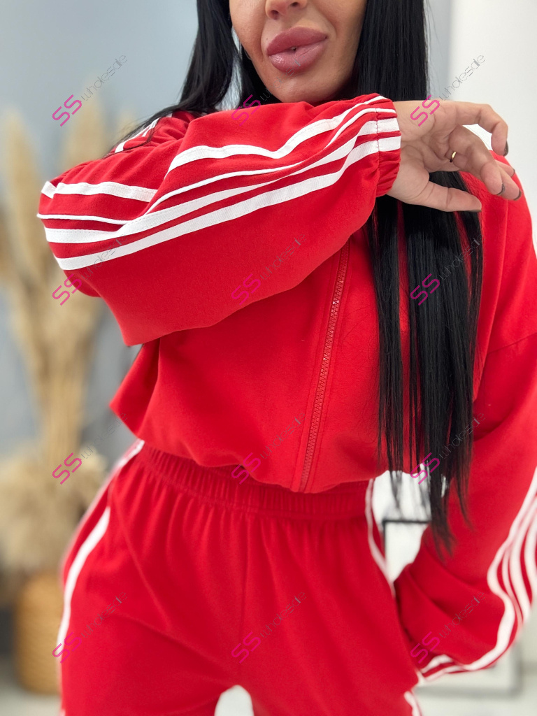 Dámsky komplet z novej kolekcie. Pozostáva z mikiny a nohavíc. Nohavice majú gumený pás a bočné vrecká. Materiál je príjemný, elastický. Mikina so zipsom a má stiahnutý spodný lem.