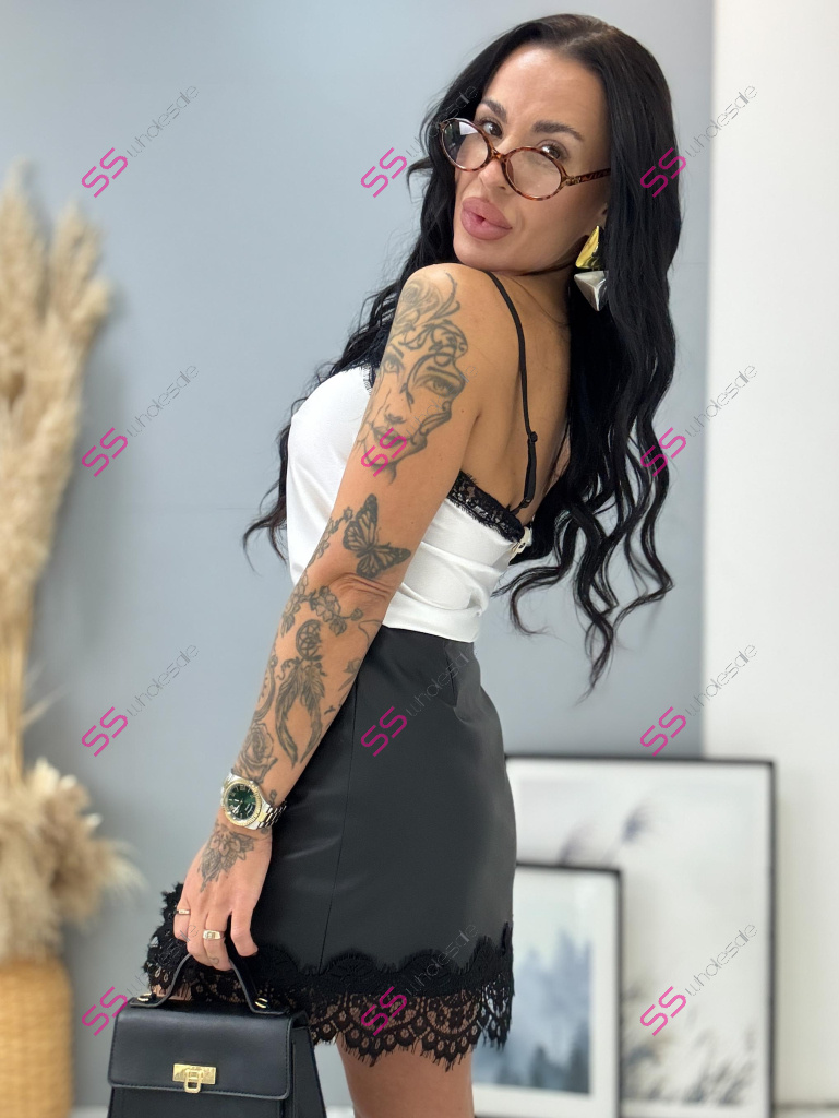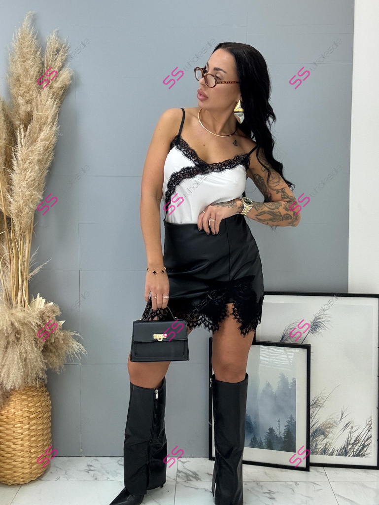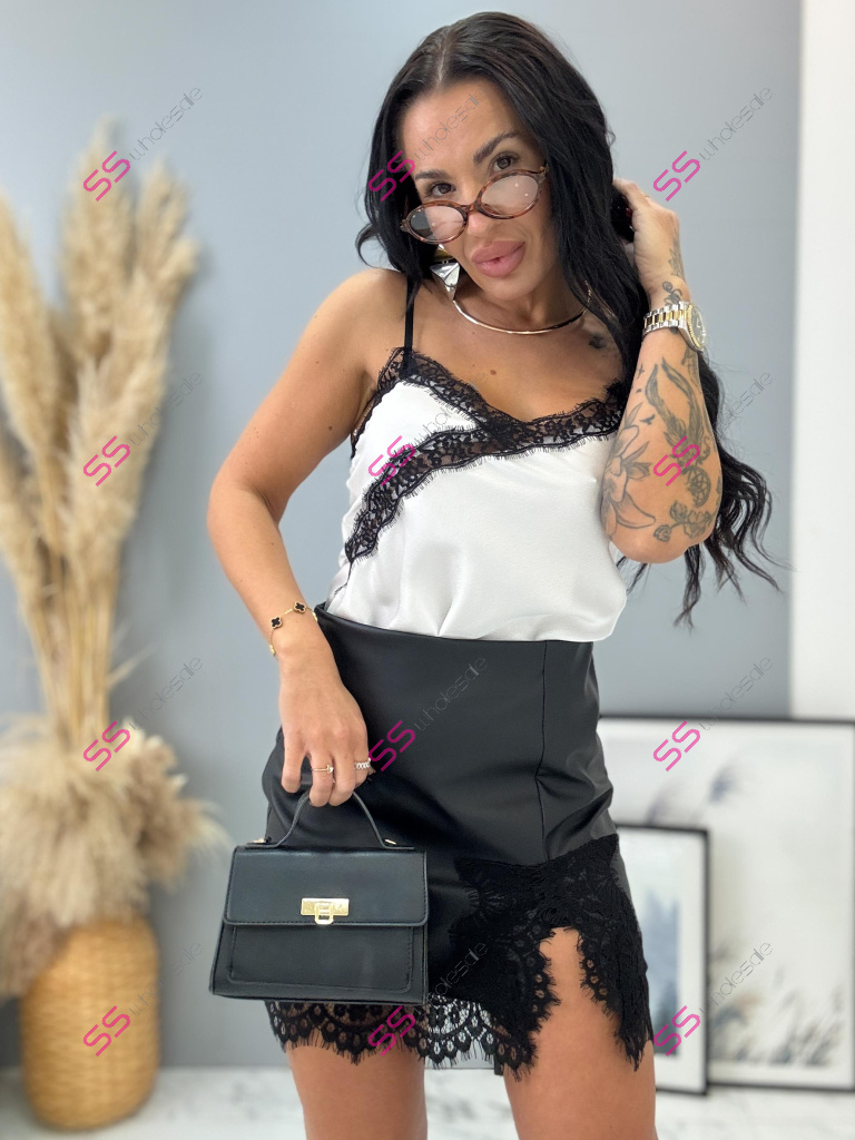 Elegantný saténový top s jemnou čipkou a nastaviteľnými tenkými ramienkami.