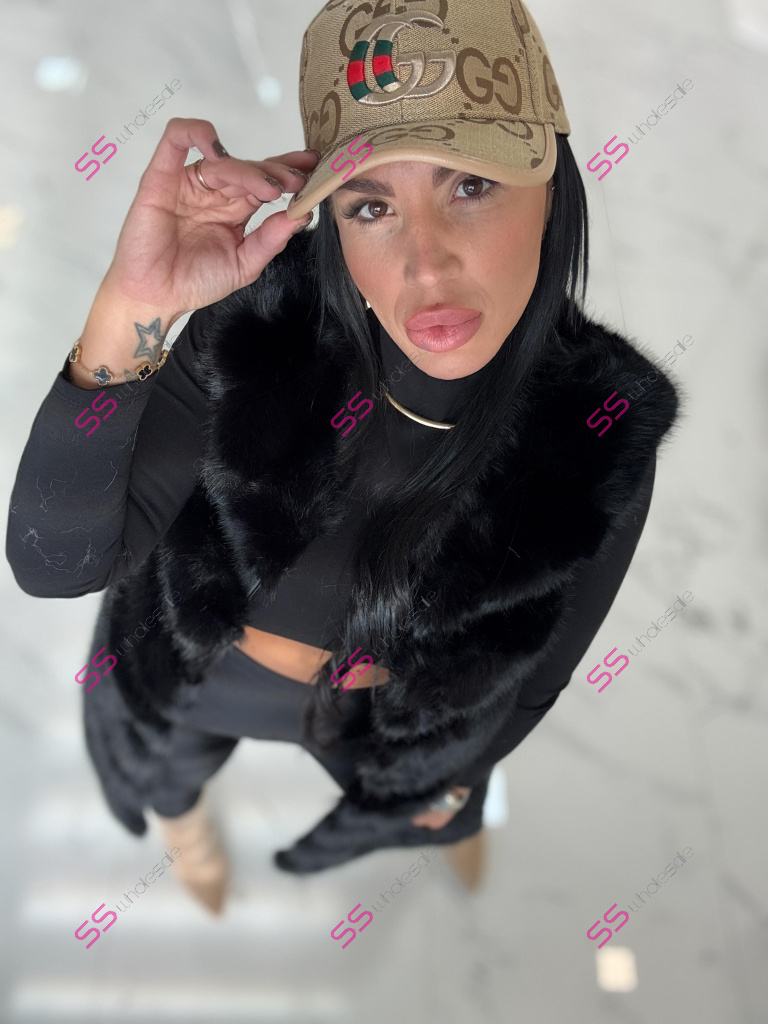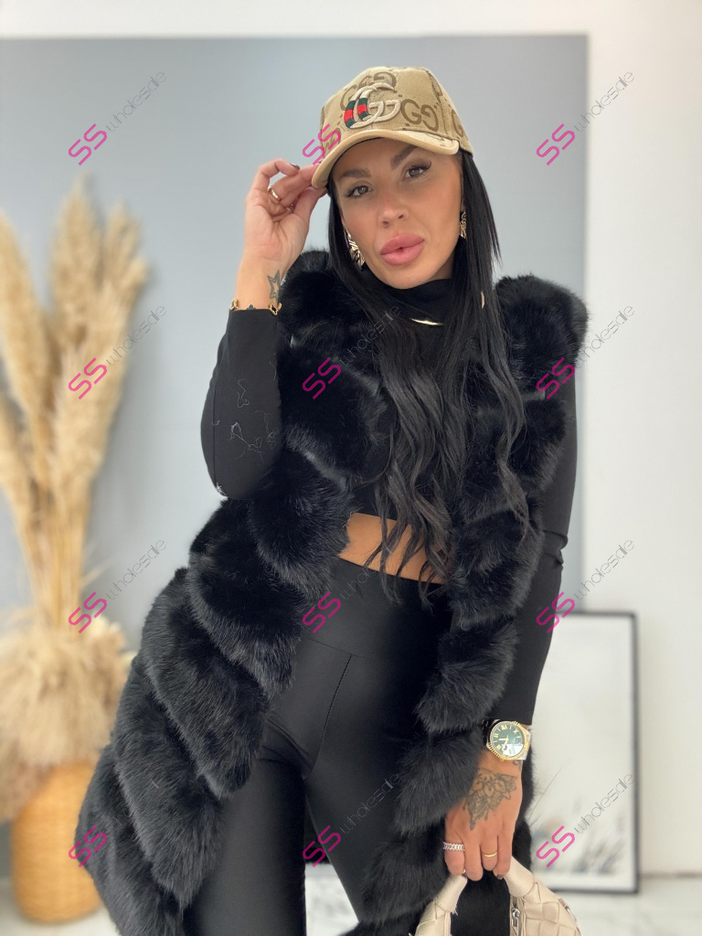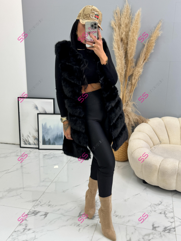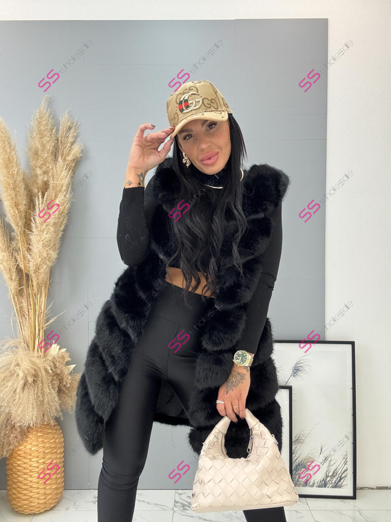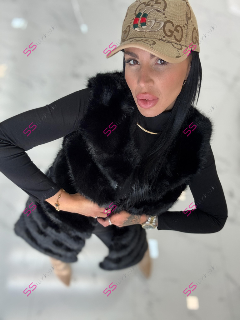 Kožená vesta s kožušinou. S bočnými vreckami v prednej časti. So sponovým zapínaním.