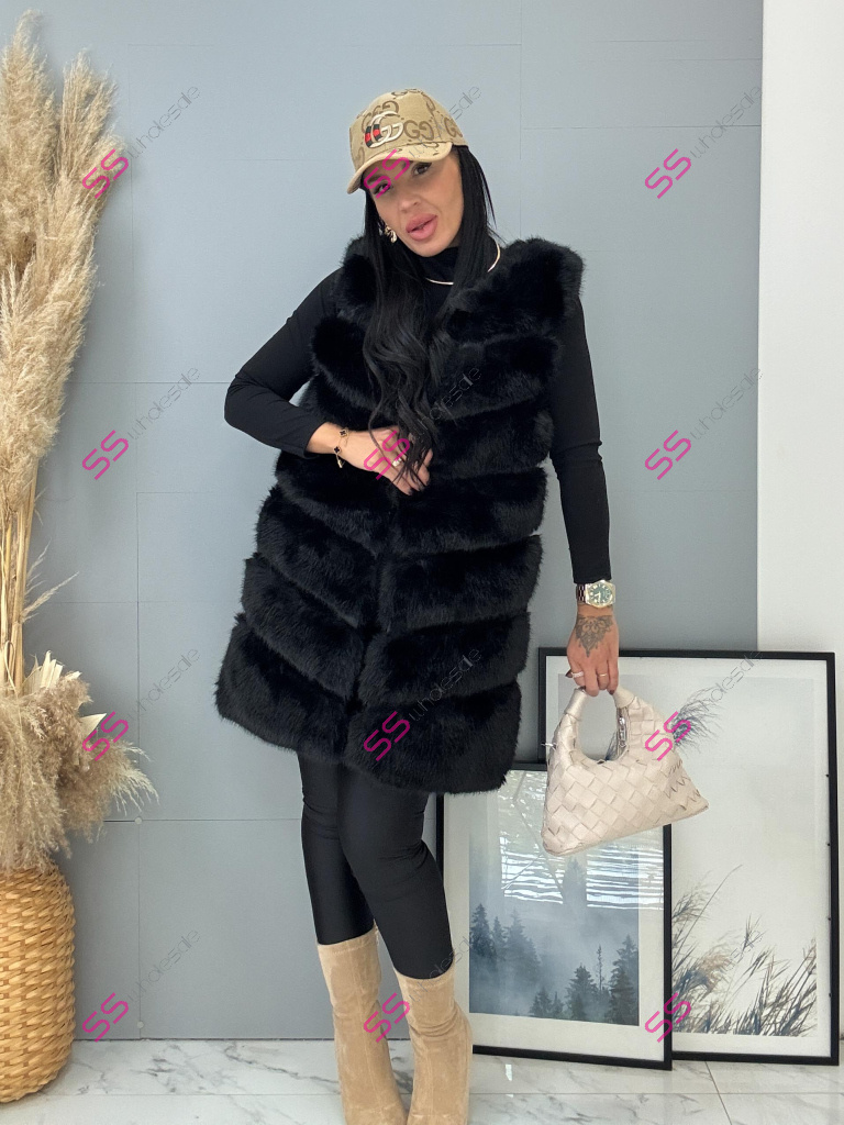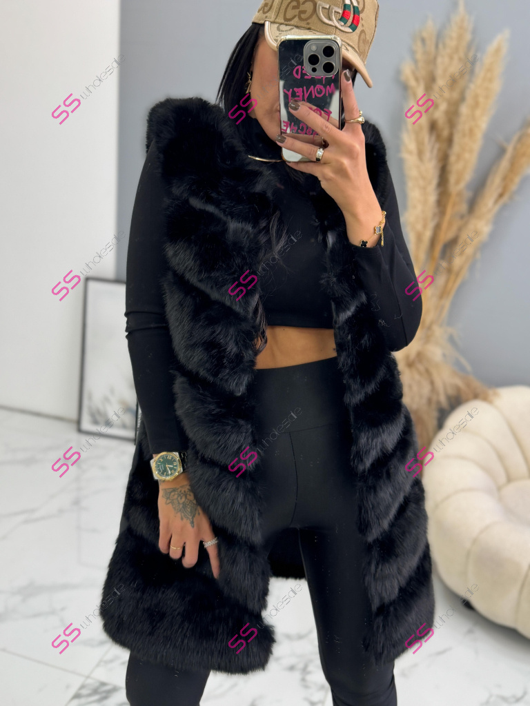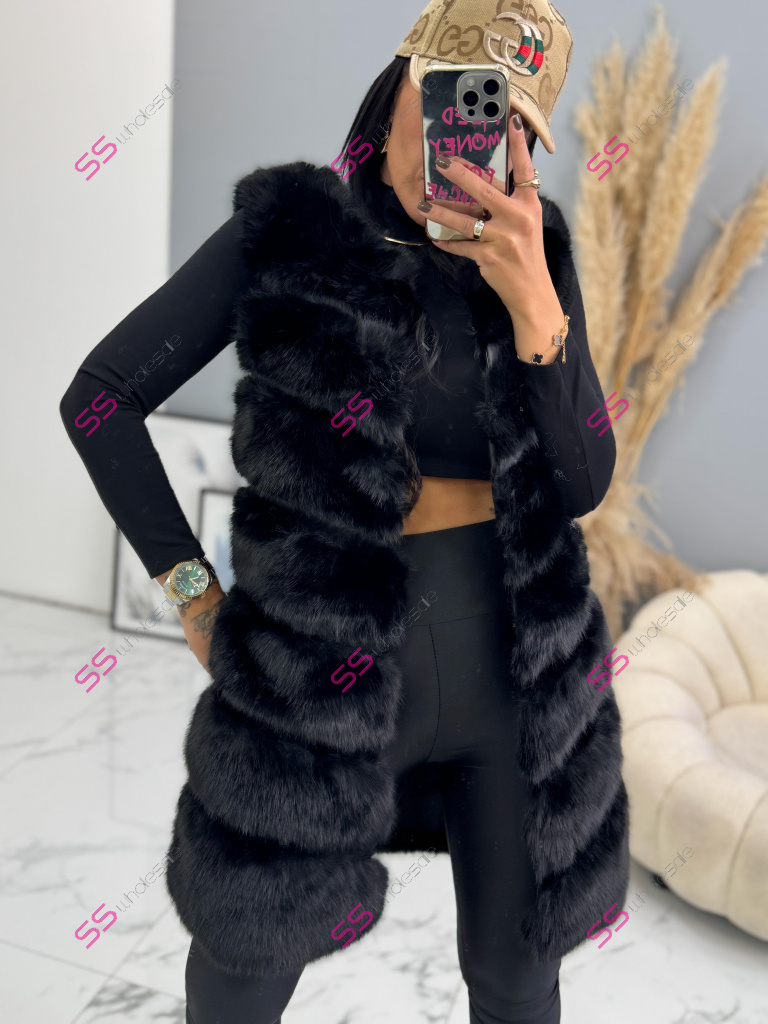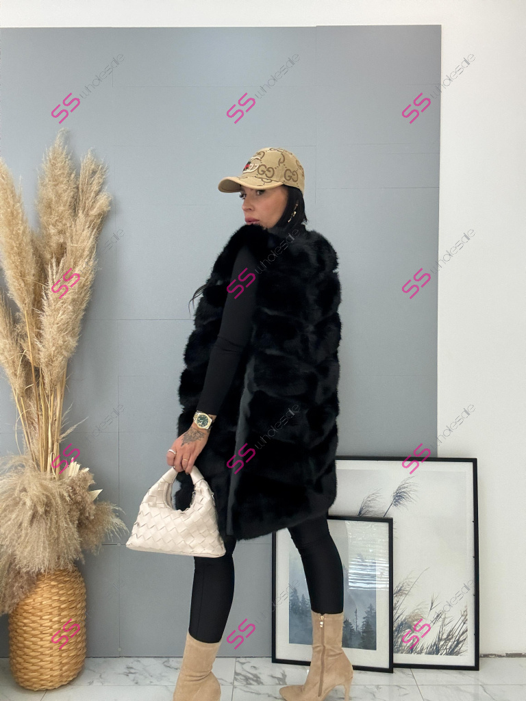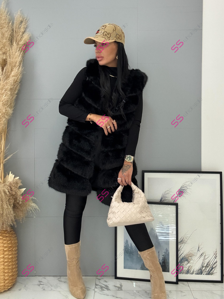 Kožená vesta s kožušinou. S bočnými vreckami v prednej časti. So sponovým zapínaním.