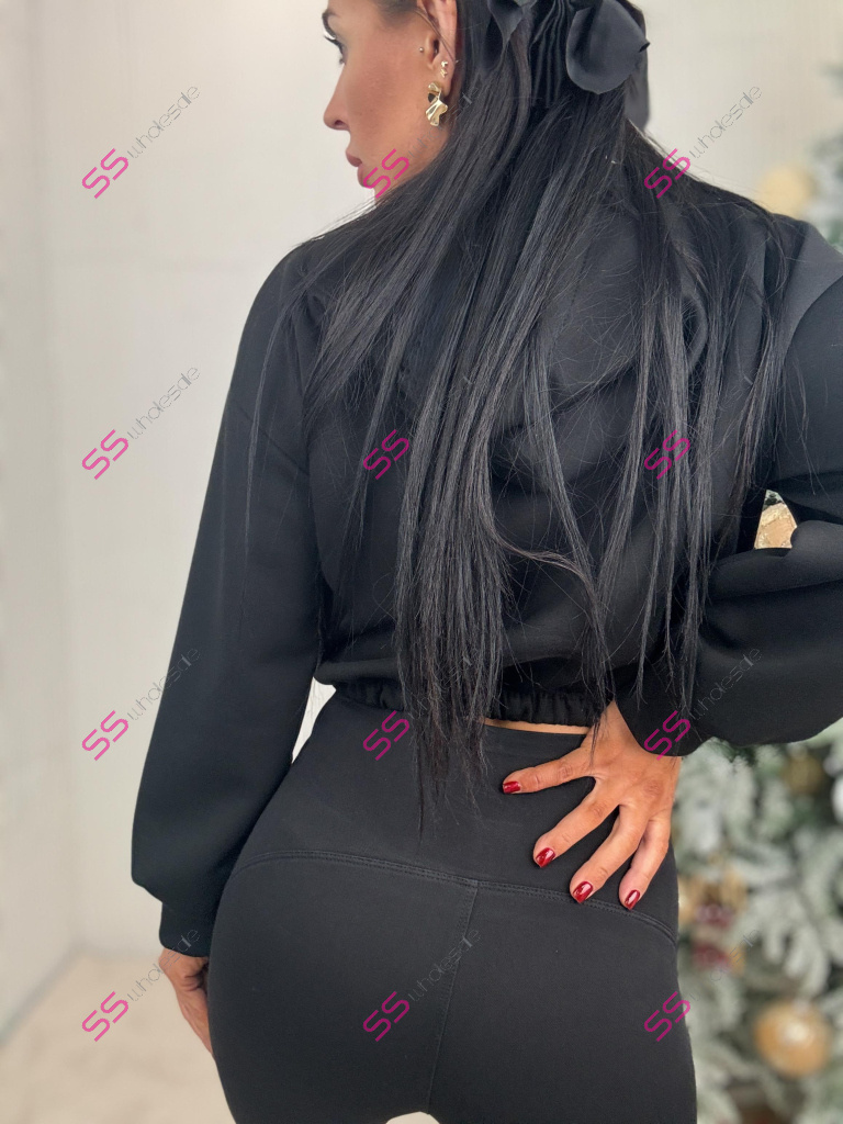 Modelka meria 164 cm a váží 57 kg. Nosí veľkosť S.