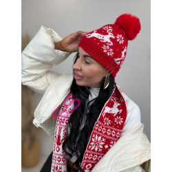 Vzorovaná teplá čiapka s brmbolcom a šálom