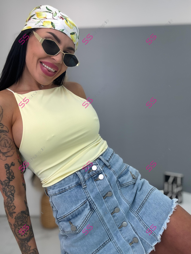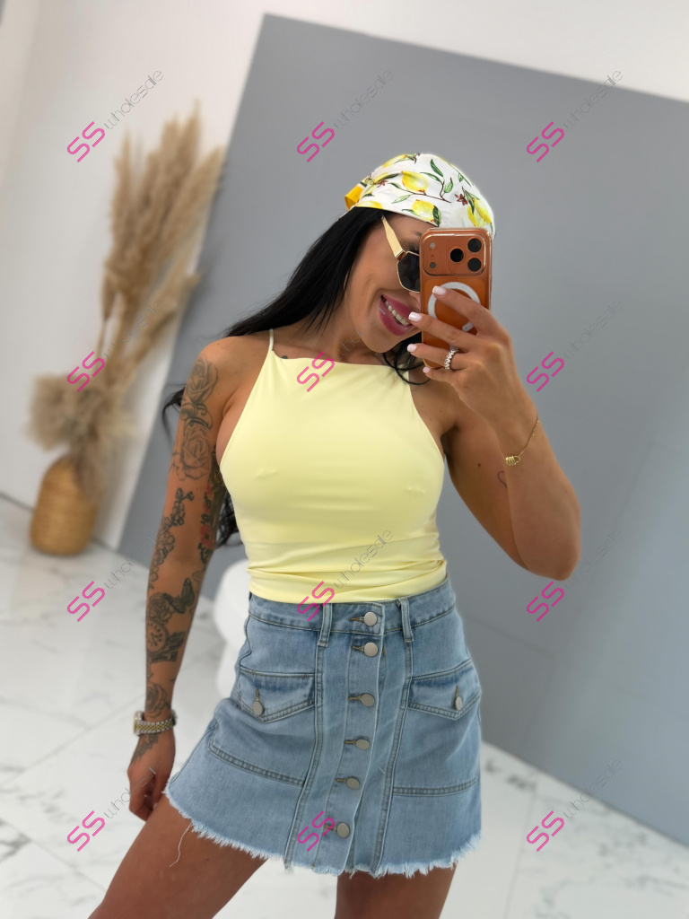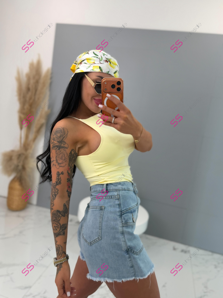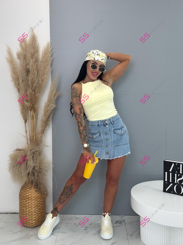 Premium kvalita. Tento denimový skort je dokonalou kombináciou sukne a krátkych nohavíc: vpredu pôsobí ako sukňa, vzadu pohodlné šortky. Celý predok je zapínaný na gombíky, ktoré majú striebornú farbu. Skort má dve predné a dve zadné vrecká. Material je elastický.