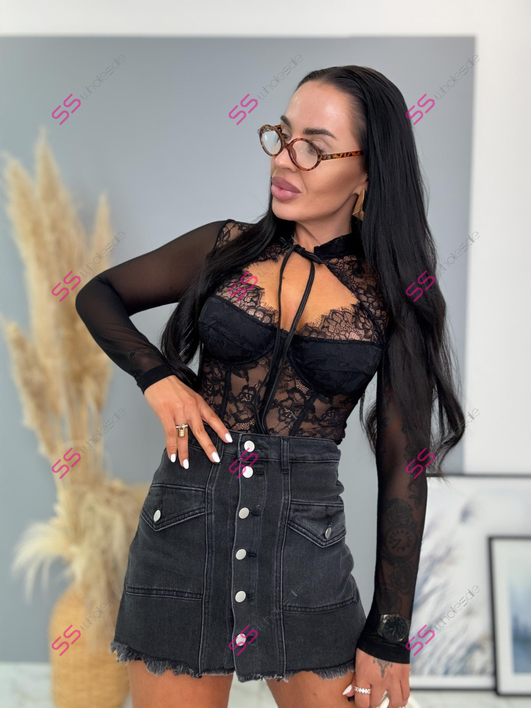 Premium kvalita. Tento denimový skort je dokonalou kombináciou sukne a krátkych nohavíc: vpredu pôsobí ako sukňa, vzadu pohodlné šortky. Celý predok je zapínaný na gombíky, ktoré majú striebornú farbu. Skort má dve predné a dve zadné vrecká. Material je elastický.