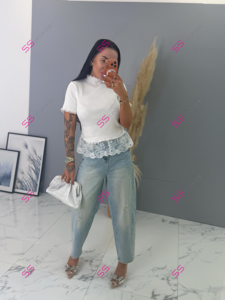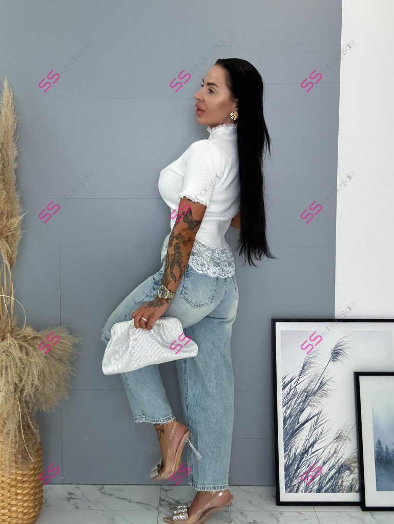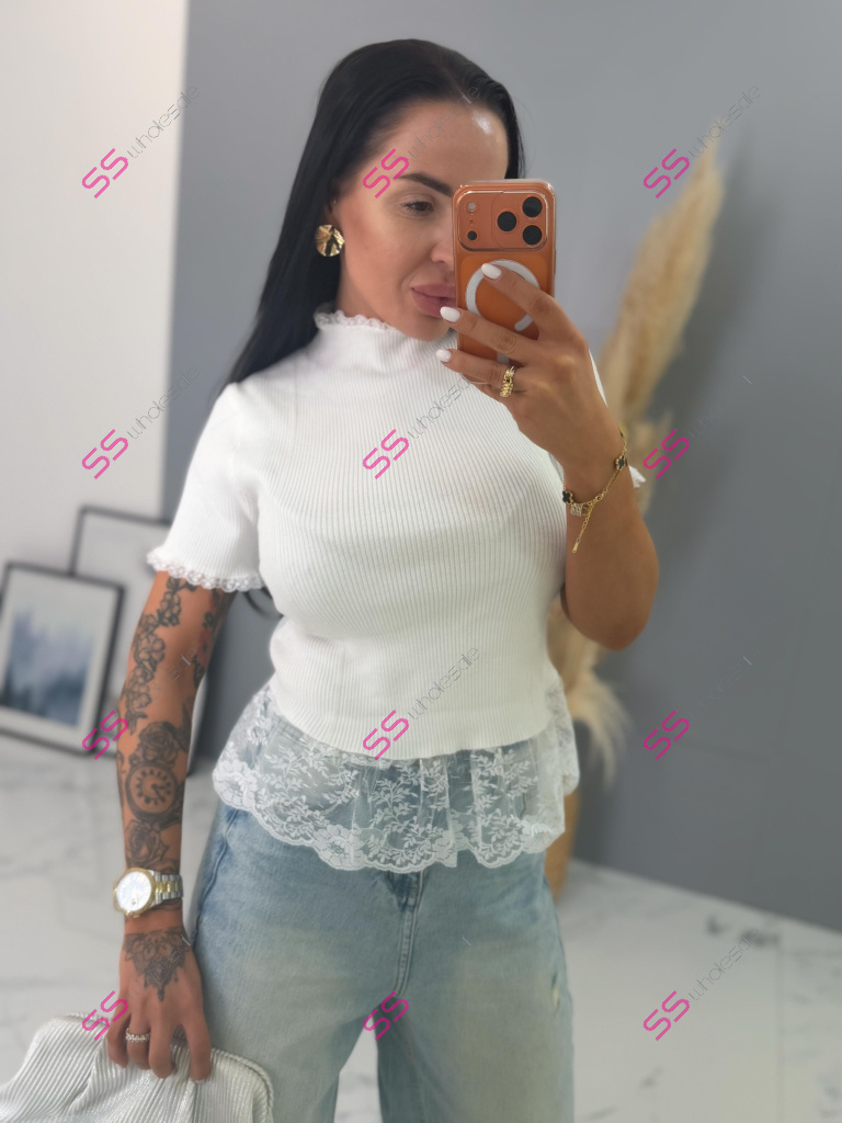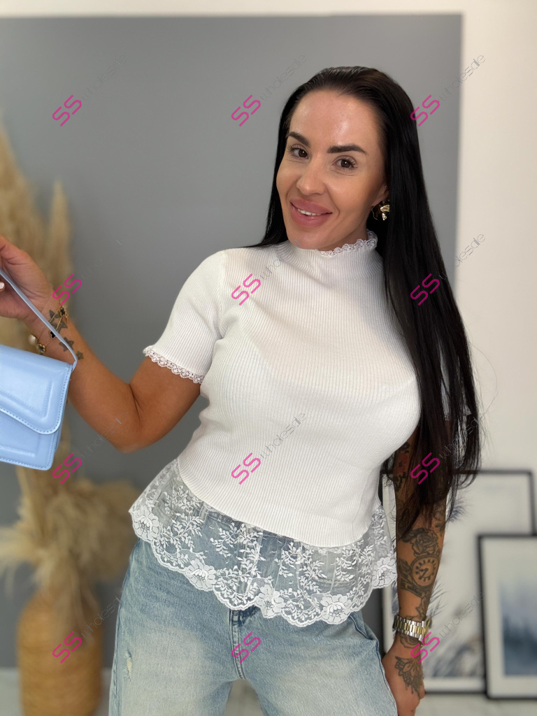 Vrúbkovaný pulóver s ozdobnou čipkou VELETA