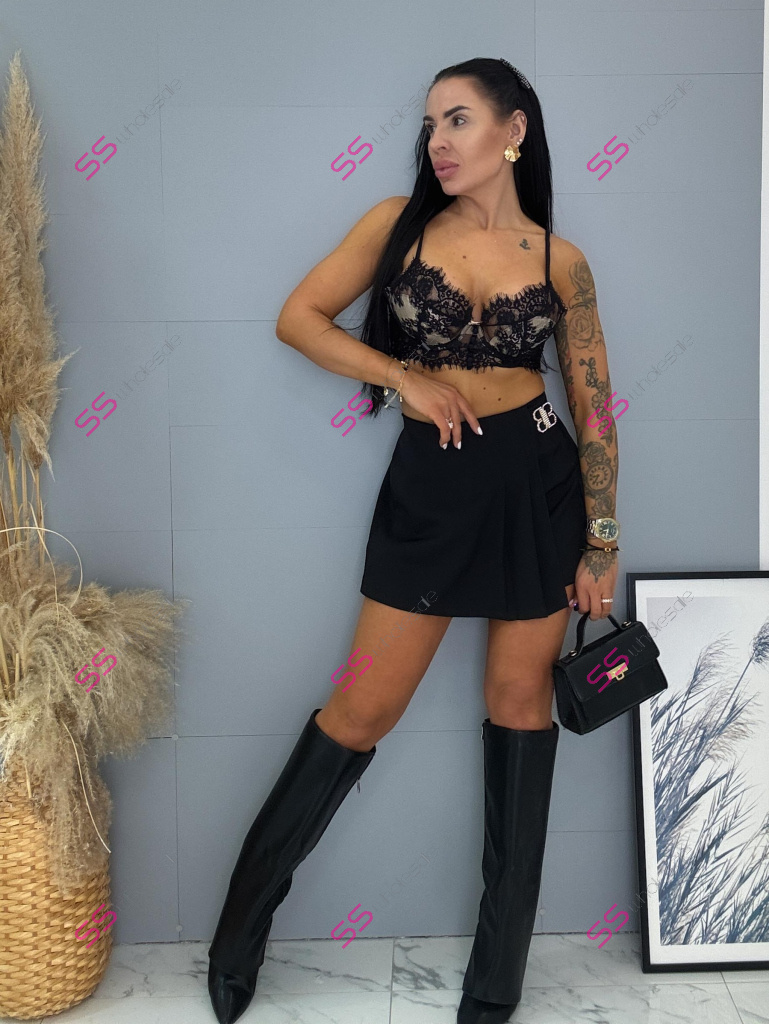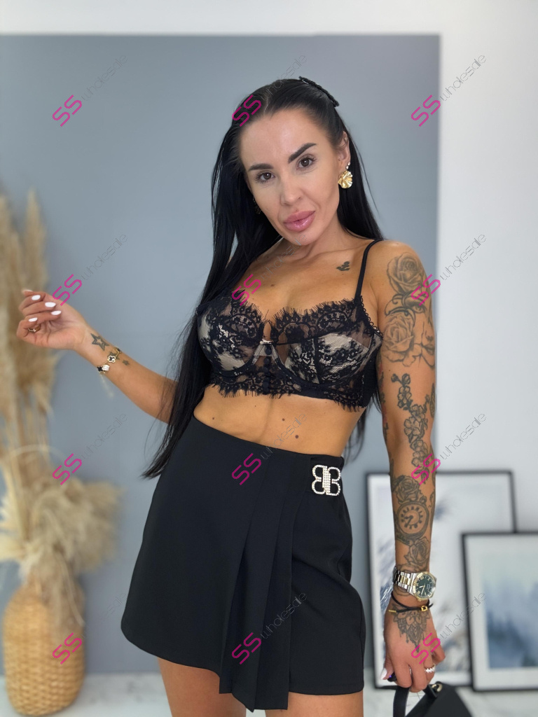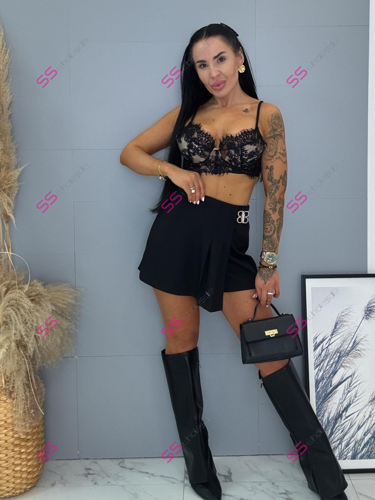 Premium kvalita. Tento skort je dokonalou kombináciou sukne a krátkych nohavíc: vpredu pôsobí ako sukňa, vzadu pohodlné šortky. Material je mierne elastický. S gumeným pásom.