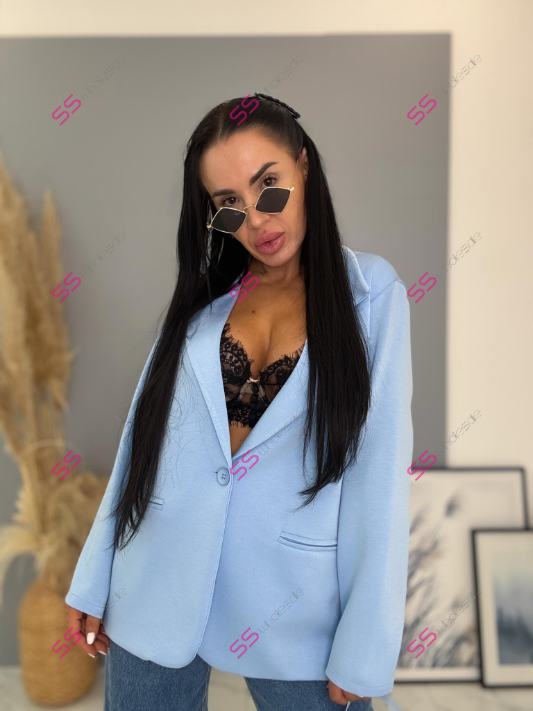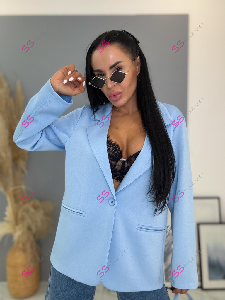 Dámske sako z príjemného materiálu. Materiál je elastický. Sako sa zapína na jeden gombík.