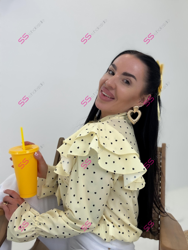 Táto ženská a hravá blúzka je ideálna na jarné a letné outfity. Gombíky majú zlatú farbu.