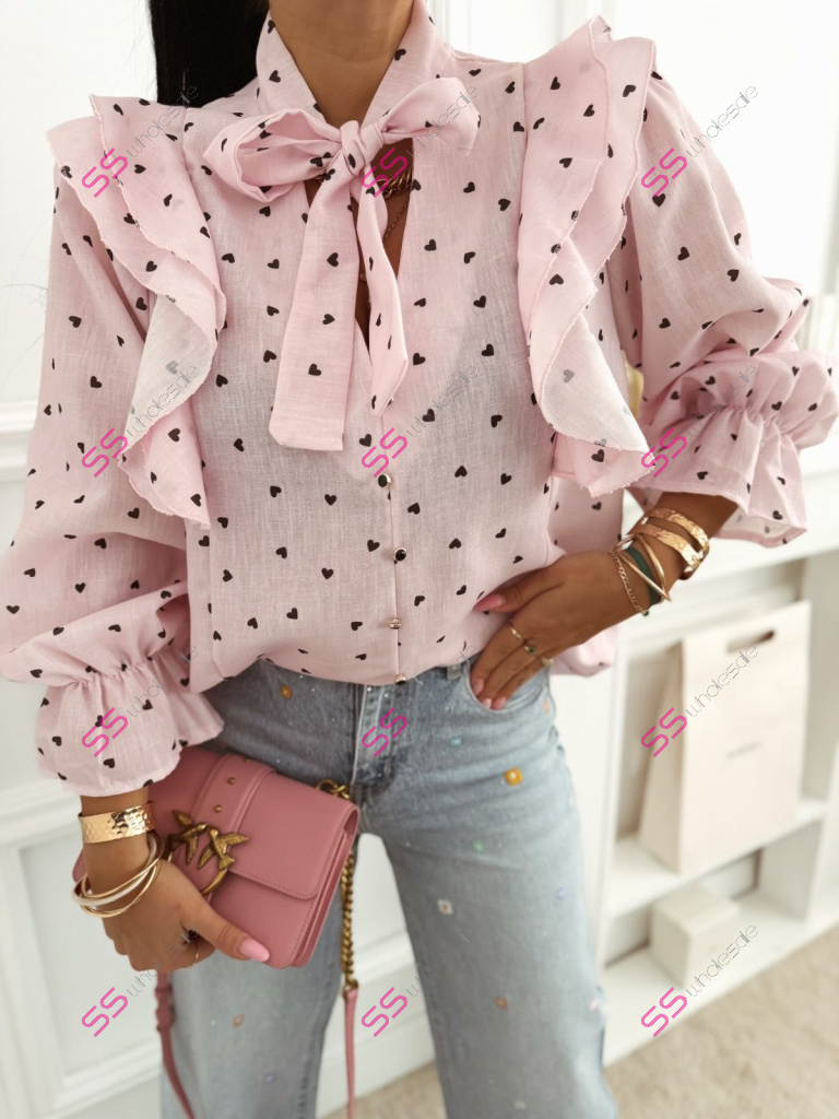 Táto ženská a hravá blúzka je ideálna na jarné a letné outfity. Gombíky majú zlatú farbu.