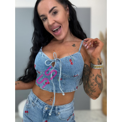 Moderný crop - top. Remienka sú nastaviteľné, s gumenou vložkou na zadnej strane.