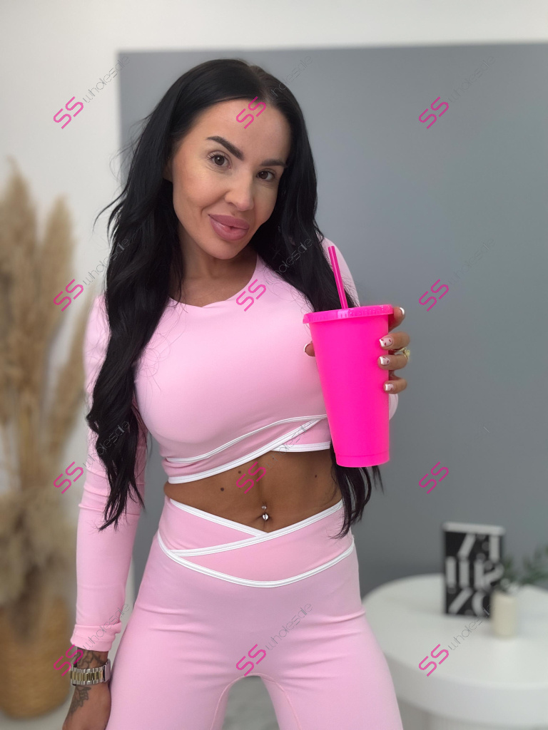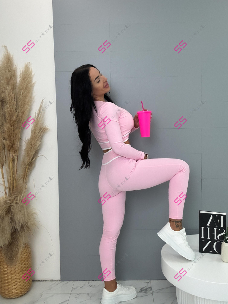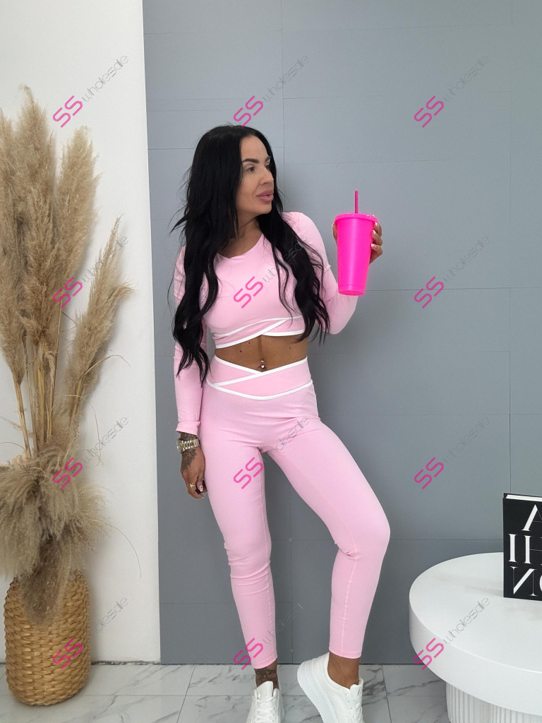 Módny komplet pre extravagantné ženy. Set pozostáva z dlhého rukávu crop-topu a legín. Materiál je elastický, nepriehľadný, kvalitný, ktorý zakrýva nedostatky pokožky. Nohavice majú gumený pás.