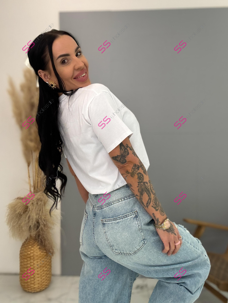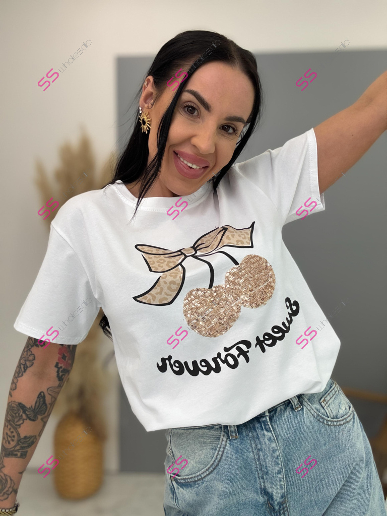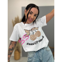 Biele tričko s flitrovým zdobením a potlačou CHERRY GOLD