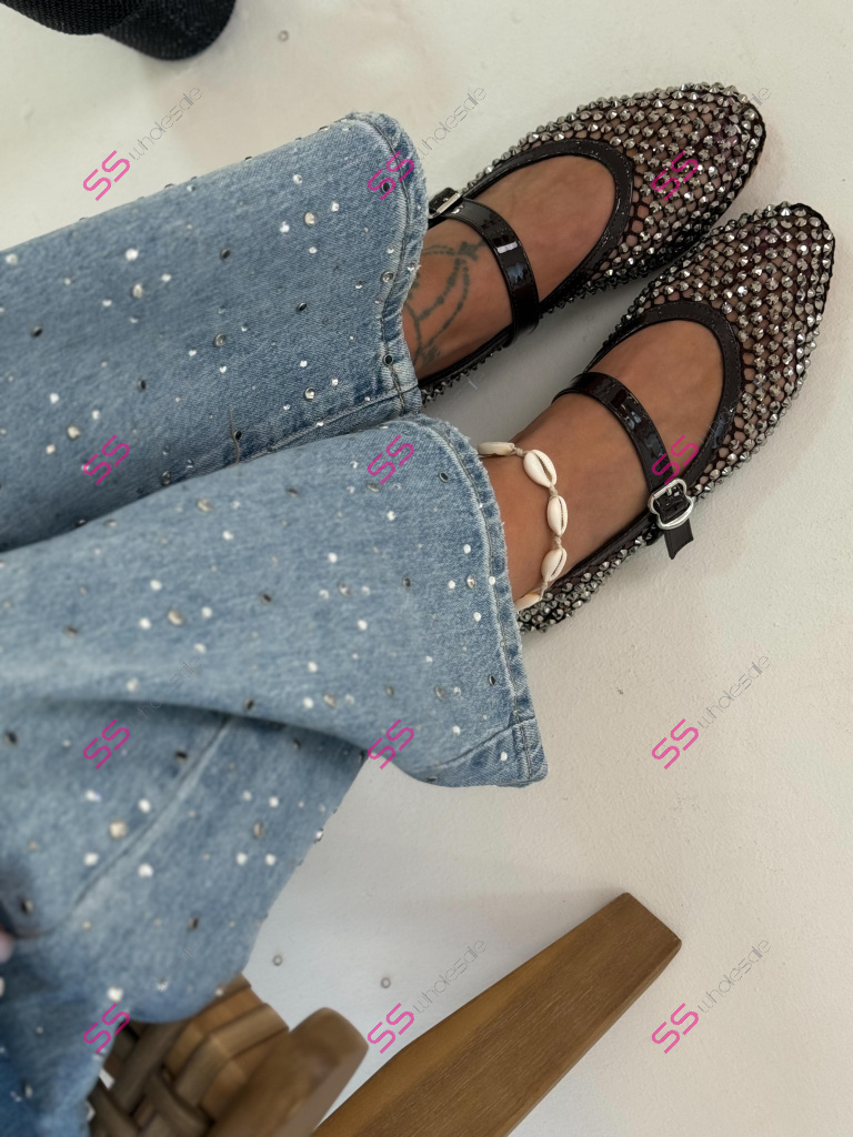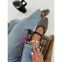 Trblietavé balerínky zdobené kamienkami, ktoré dodávajú outfitu jemný, ale výrazný akcent. Remienok cez priehlavok s nastaviteľným zapínaním zabezpečuje pohodlie a lepšiu fixáciu chodidla. Ideálna voľba k džínsom, šatám aj elegantnejším outfitom.